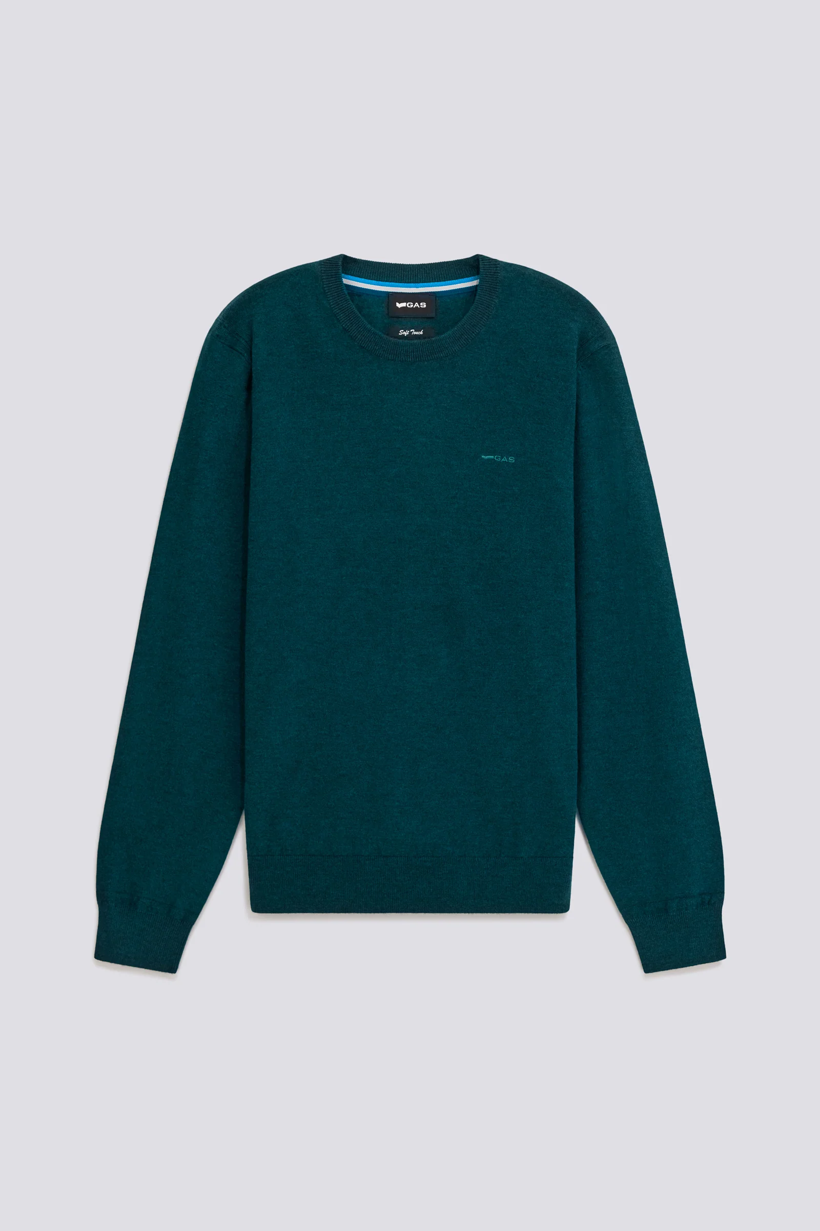 Maglia girocollo slim fit in filato finezza 12, morbida e leggera al tatto. Il bordatore rigato sul retro del collo e il ricamo logo tonale sul petto firmano il look. Un essenziale dal carattere clean, perfetto sotto blazer o da solo con denim o chino.