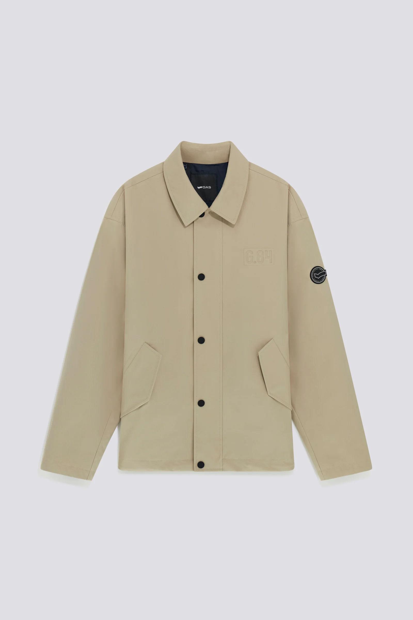 Realizzata in nylon, questa giacca relaxed fit si distingue per i dettagli: bottoni a pressione personalizzati, stampa a rilievo effetto tono su tono posizionata sul davanti, e patch gommato iconico sulla manica. Il colore beige la rende facile da abbinare, perfetta per completare i look di stagione con uno stile clean ma deciso.