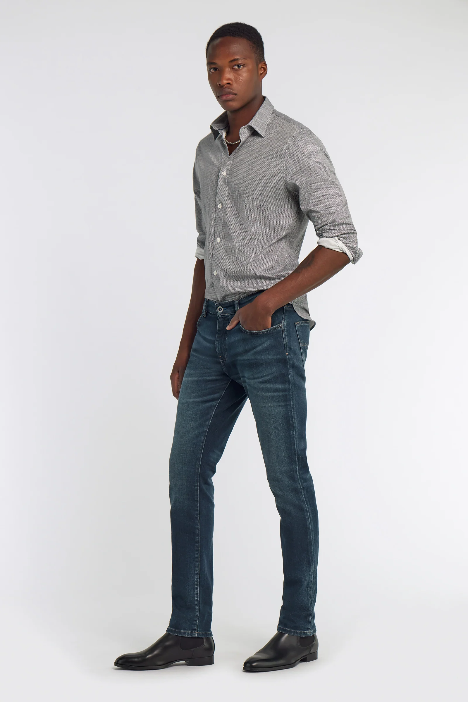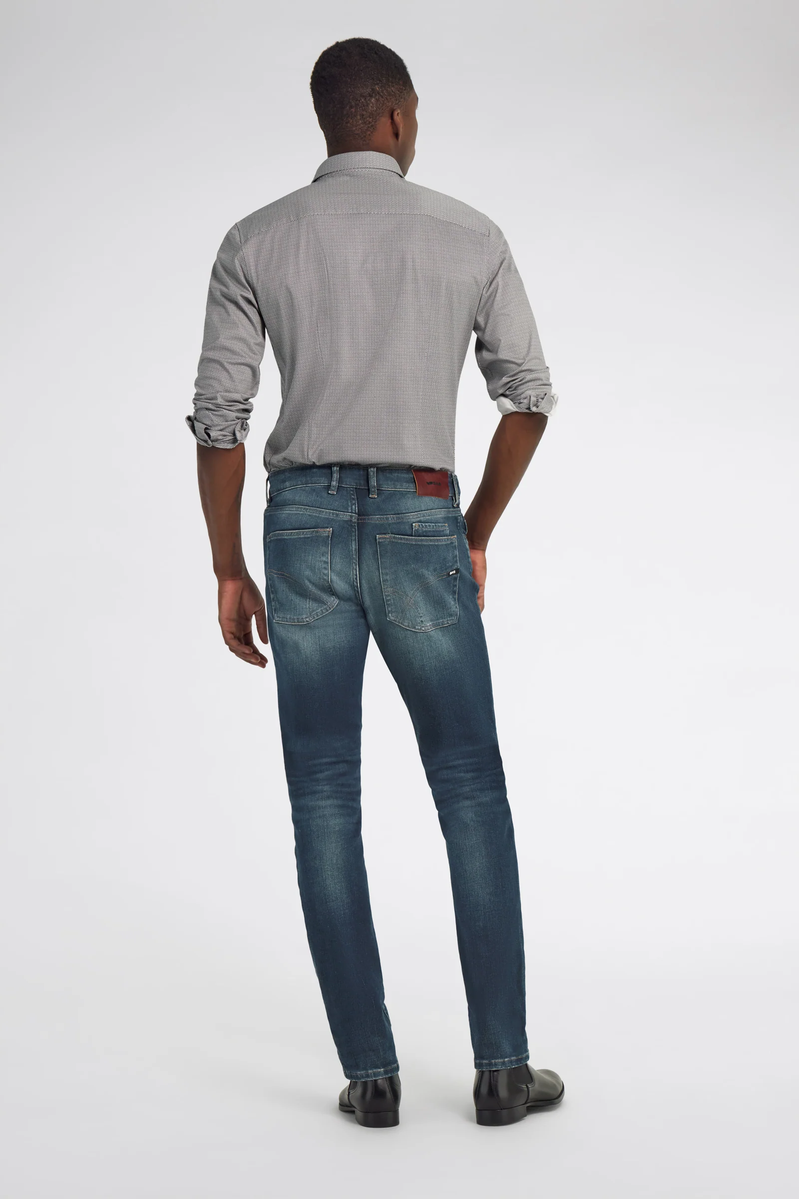 Autentico, essenziale, contemporaneo. Questo jeans slim fit è realizzato in denim blue indaco crosshatch comfort 13.20 OZ, lavaggio blu scuro con leggere abrasioni su fondo e bordi tasche per un look vissuto. A completare il modello Plus, il 6° taschino posizionato nella tasca posteriore destra.