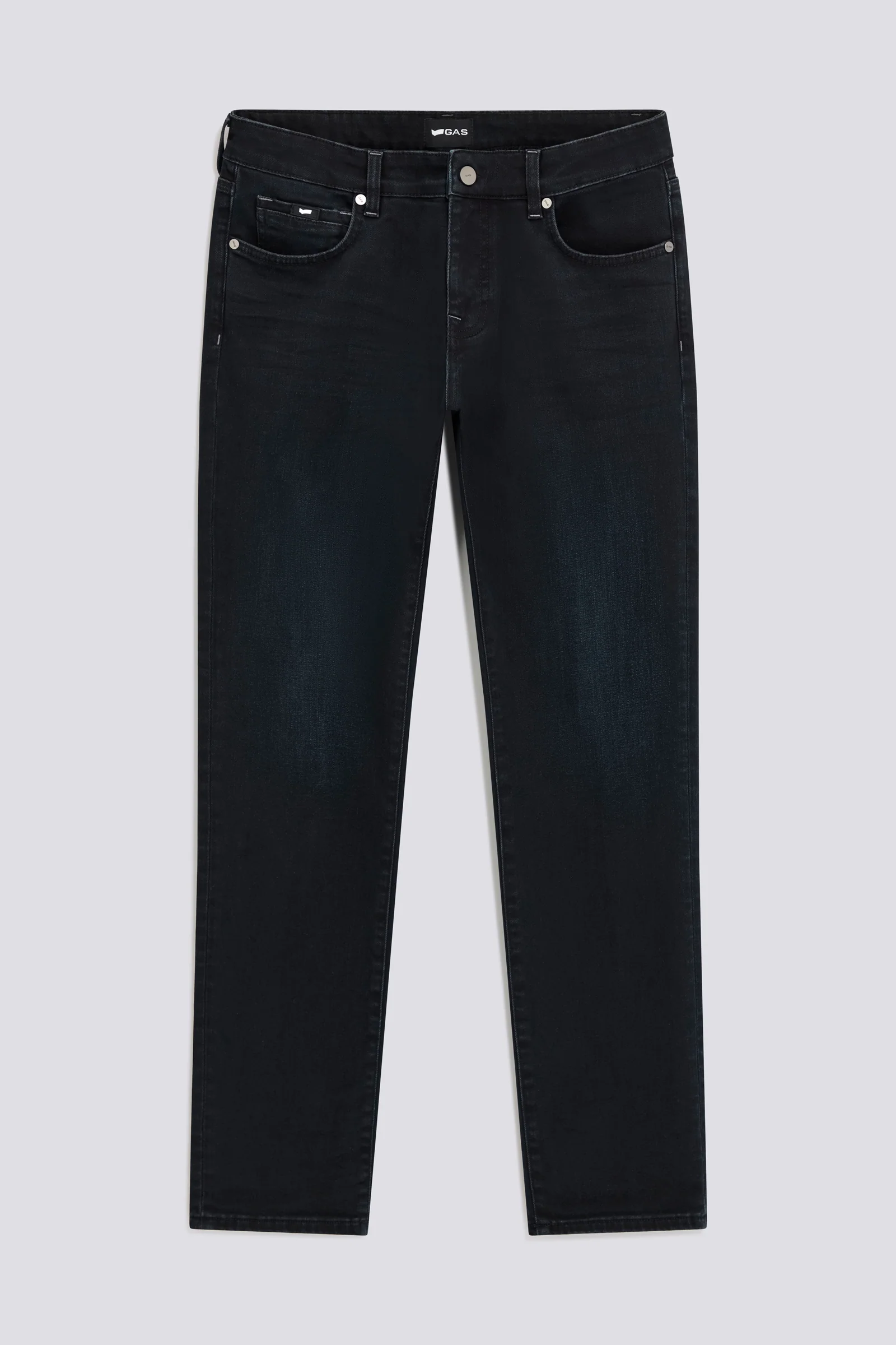 Jeans 5 tasche slim fit in denim tri-blend premium 10 OZ, blue black stretch ad alto rientro per un comfort che dura nel tempo. Il lavaggio scuro con pomice ne esalta la texture, mentre il dettaglio in silicone sulle tasche posteriori aggiunge un tocco grafico distintivo.