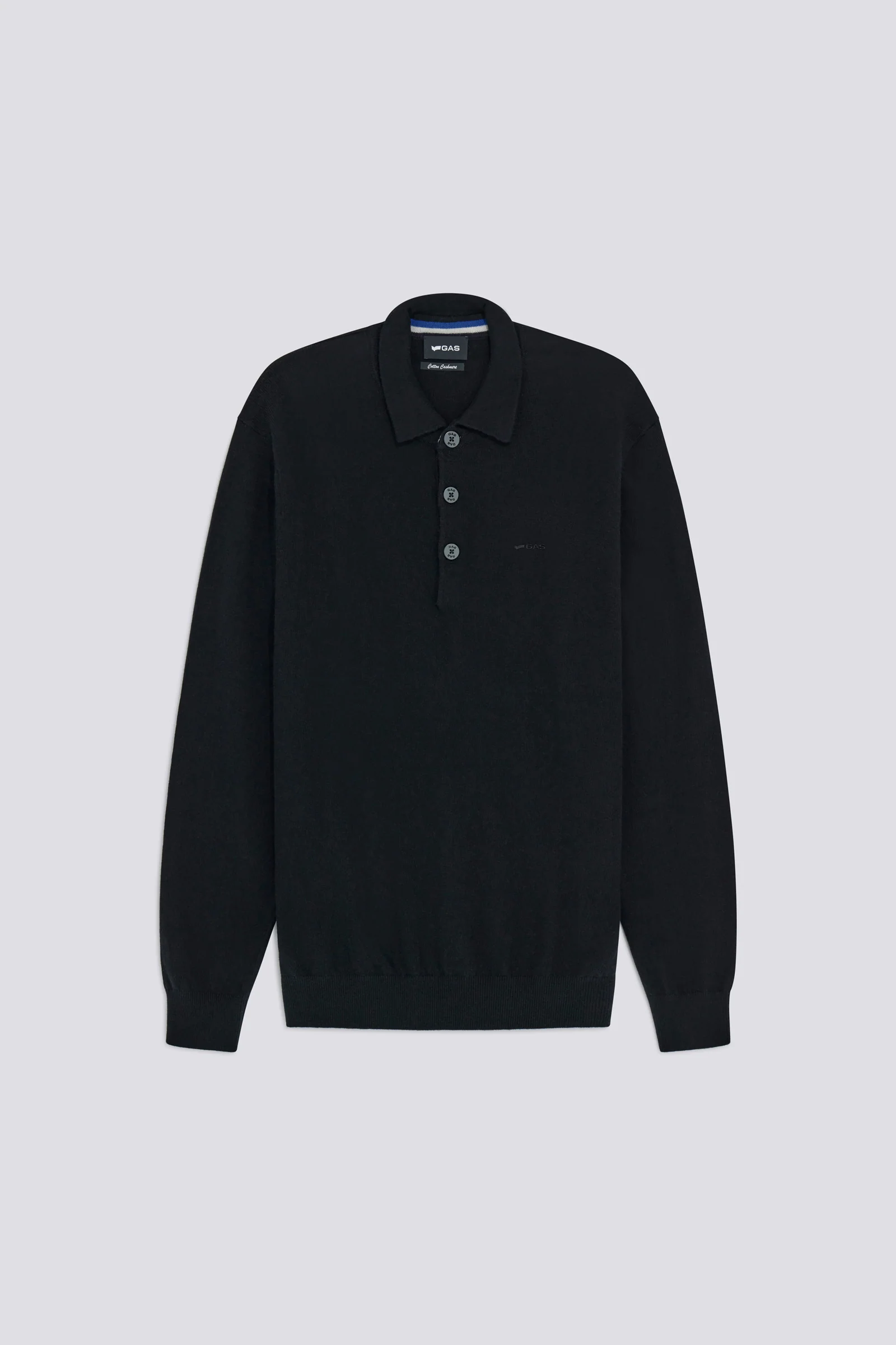 Polo in maglia uomo slim fit in morbido cotone misto cashmere, impreziosito dal ricamo GAS lato cuore. Un essential invernale raffinato, perfetto da solo o sotto una giacca.Caratteristiche Principali: Slim Fit Cotone misto cashmere Colore: Nero Ricamo GAS Il modello indossa la taglia L/33