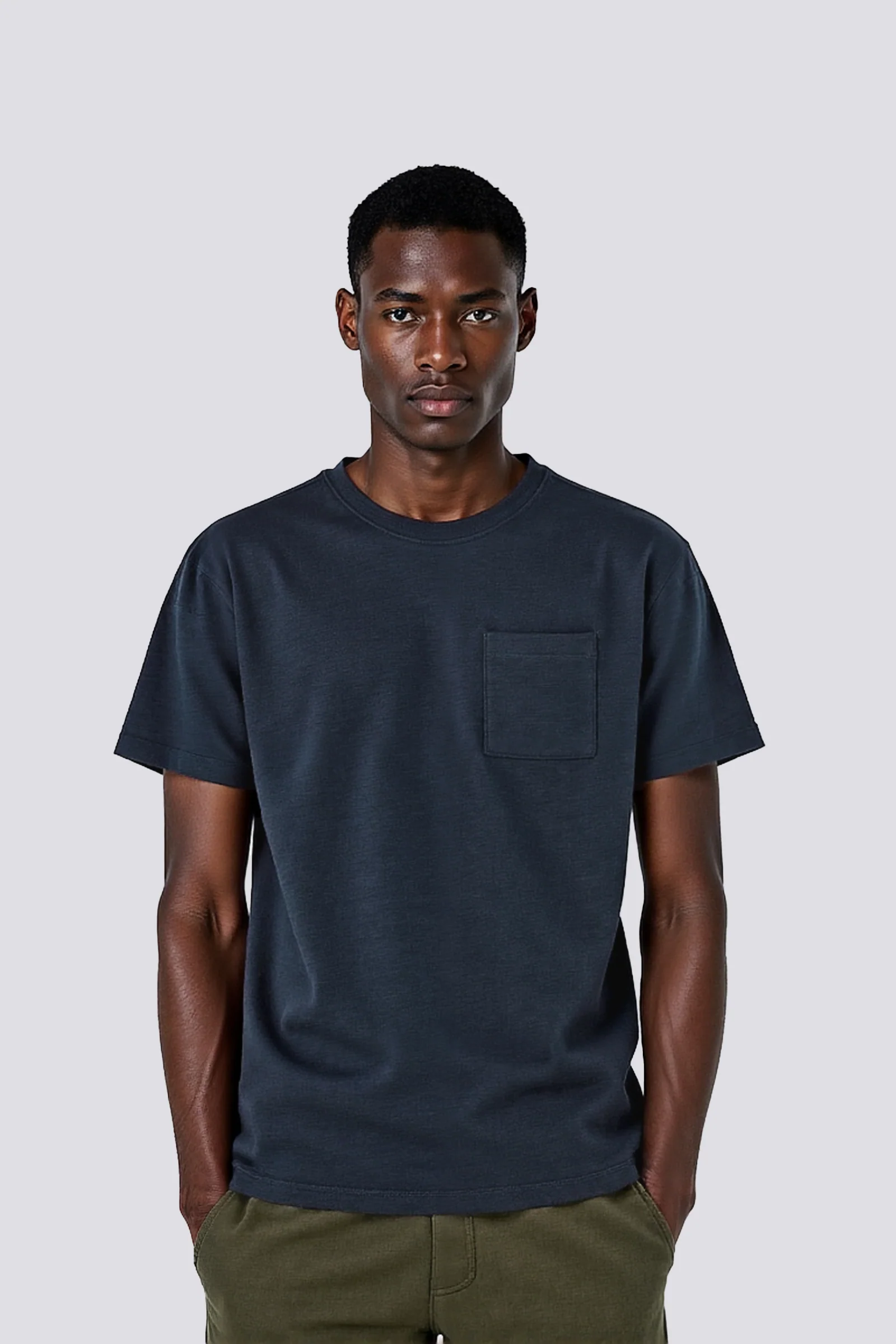 T-shirt uomo a manica corta, regular fit – Realizzata in 100% cotone slub, è un capo essenziale per il dailywear. Il pratico taschino sul petto e l’etichetta logo jacquard posizionata sul fianco sinistro le conferiscono un tocco distintivo, garantendo comfort e stile in ogni occasione.