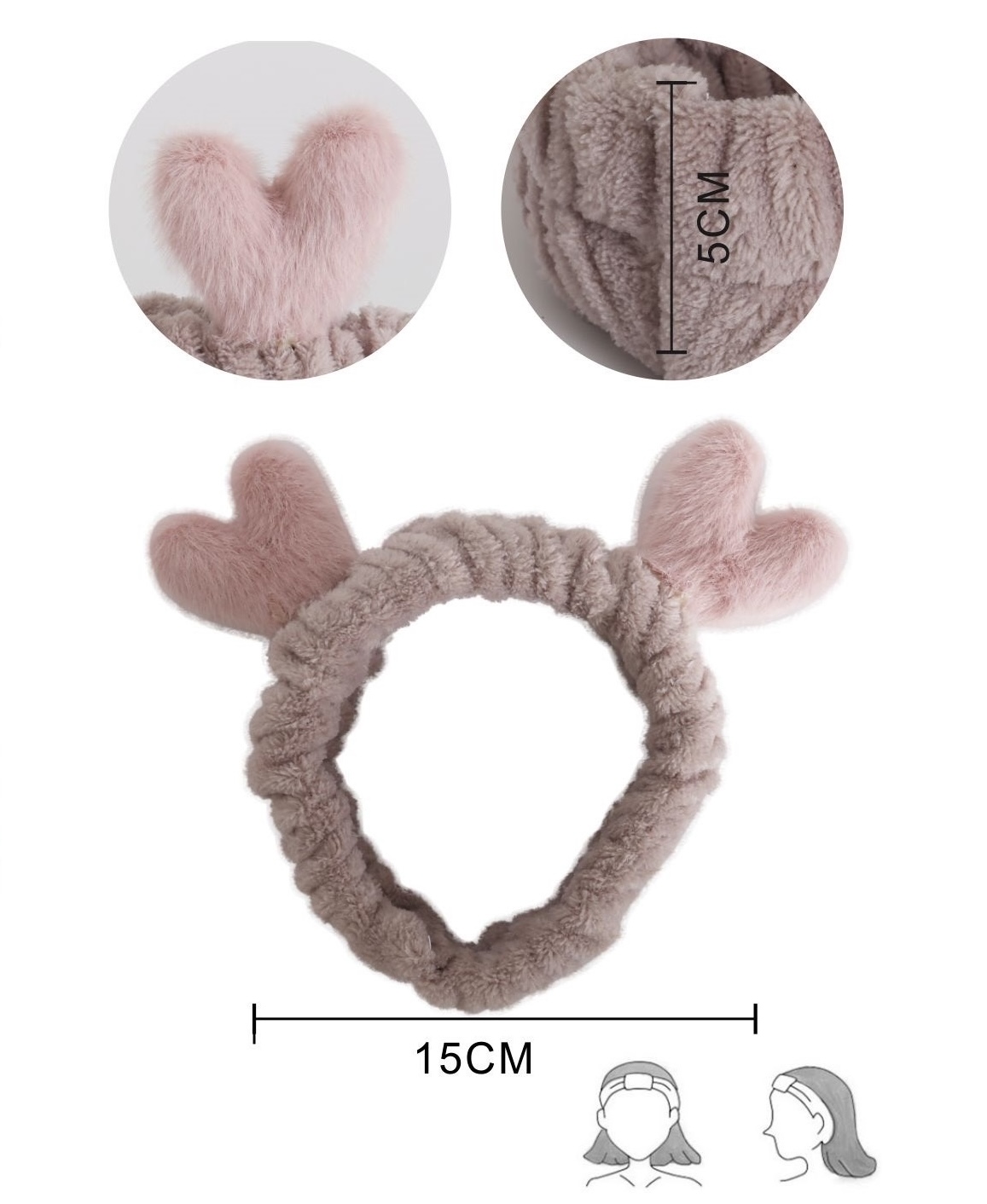 Accessoire Beauté Indispensable Craquez pour notre adorable bandeau de maquillage avec oreilles en forme de cœur ! Cet accessoire beauté ultra-pratique deviendra votre allié quotidien pour une routine skincare et maquillage parfaite. Caractéristiques principales : • Diamètre : 15 cm – s’adapte parfaitement à toutes les têtes • Matière microfibre ultra-douce et hypoallergénique • Design kawaii avec oreilles cœur irrésistibles • Disponible en plusieurs coloris tendance (rose, gris, taupe, violet) • Élastique ajustable pour un maintien optimal Pourquoi adopter notre bandeau maquillage ? ✓ Maintient parfaitement vos cheveux pendant vos soins visage ✓ Idéal pour démaquillage, masques, nettoyage de peau…