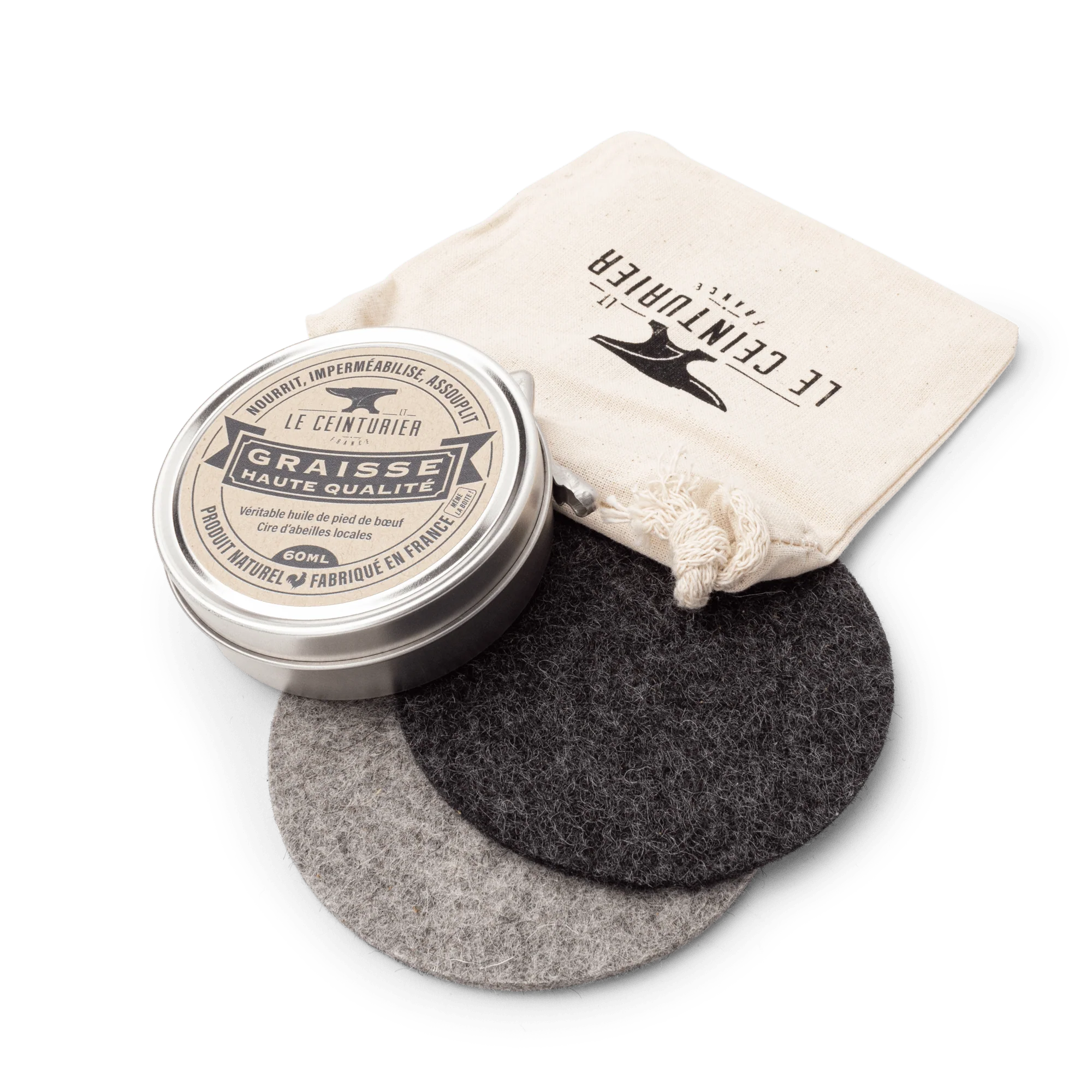• Fourni avec 2 tampons 100% laine Mérinos pour appliquer la baume puis lustrer le cuir