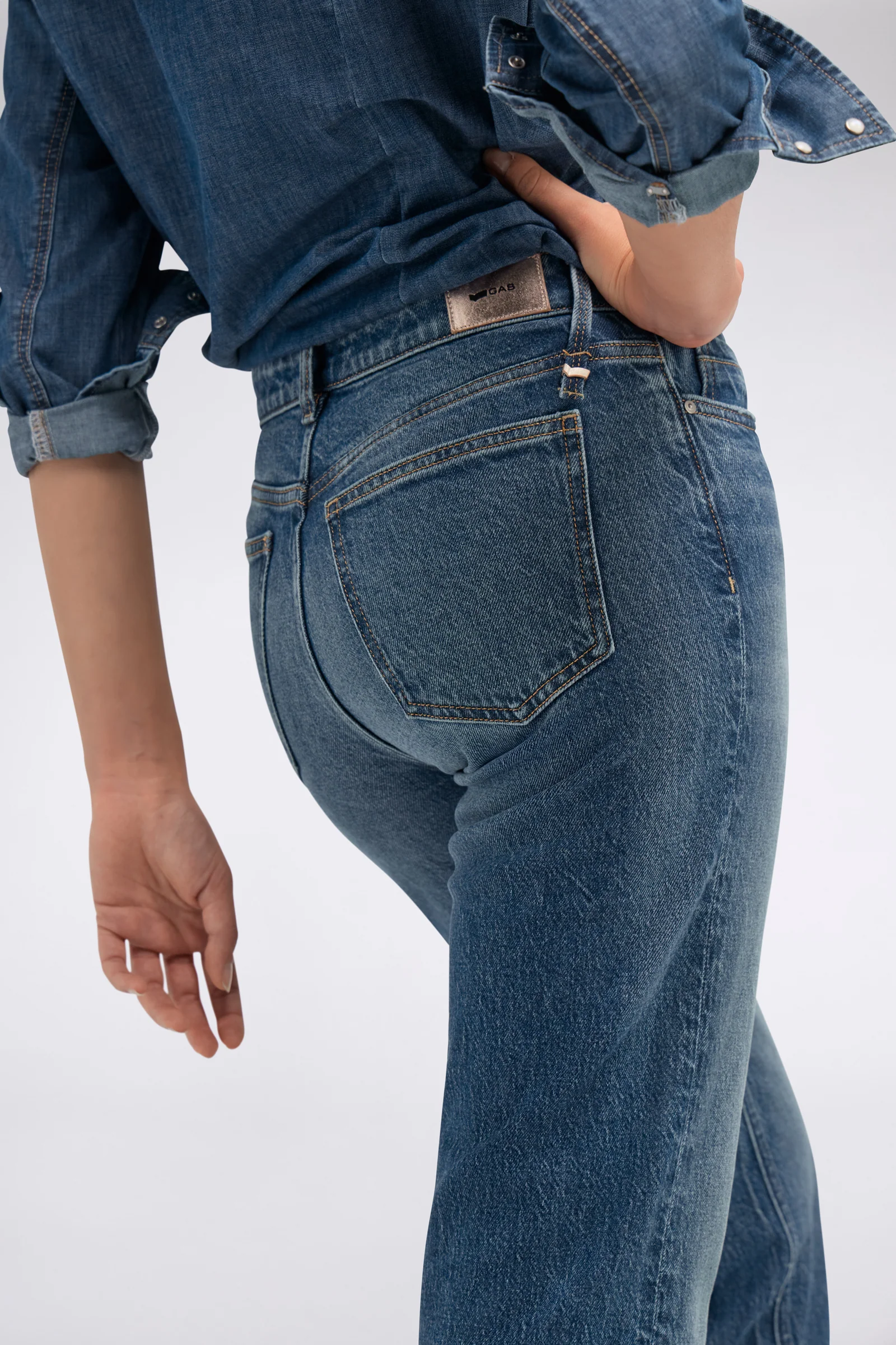 - Lavaggio medio scuro e leggere abrasione su tasche e fondo