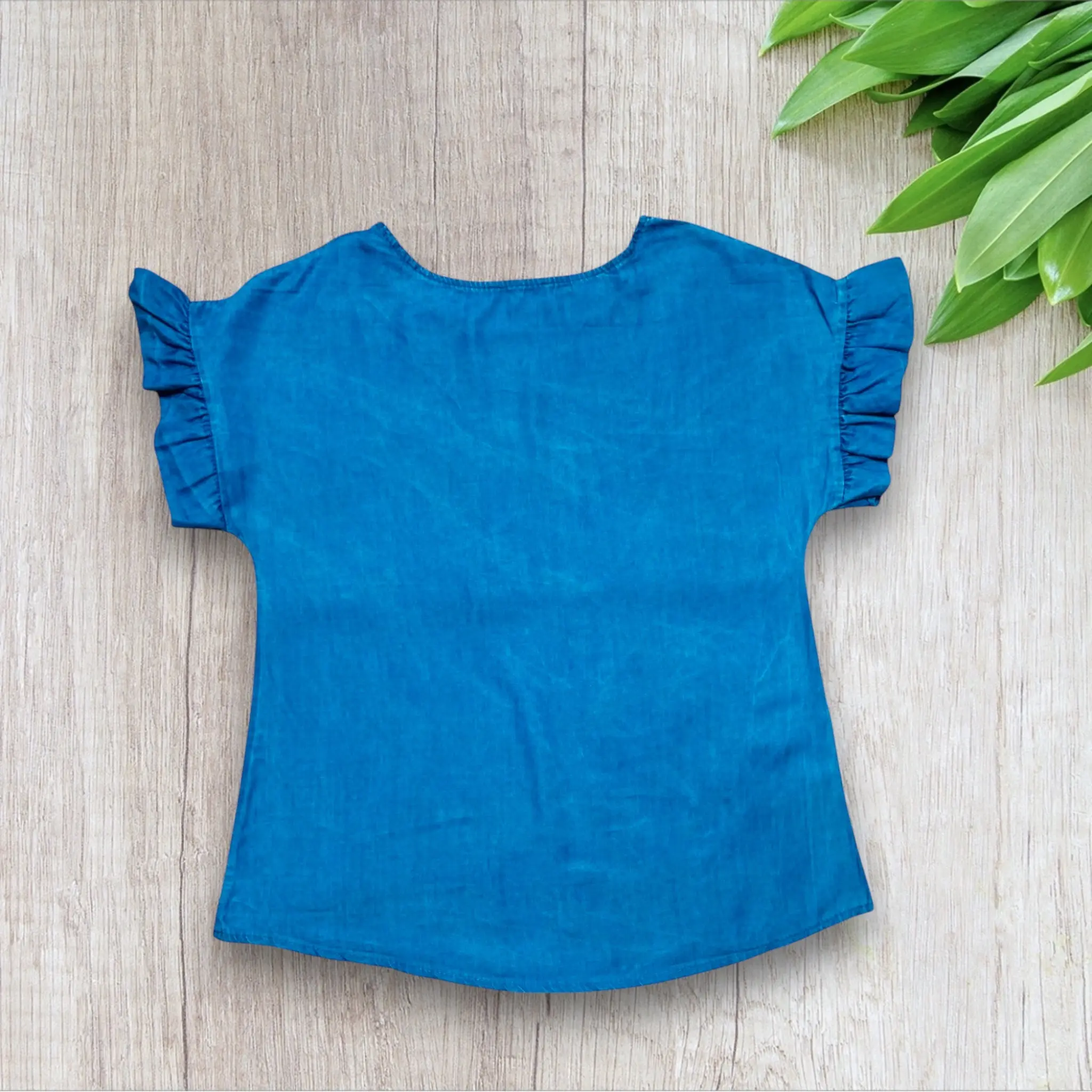 Blouse en Jean Femme Taille Unique Col Rond Manches Courtes avec Volants