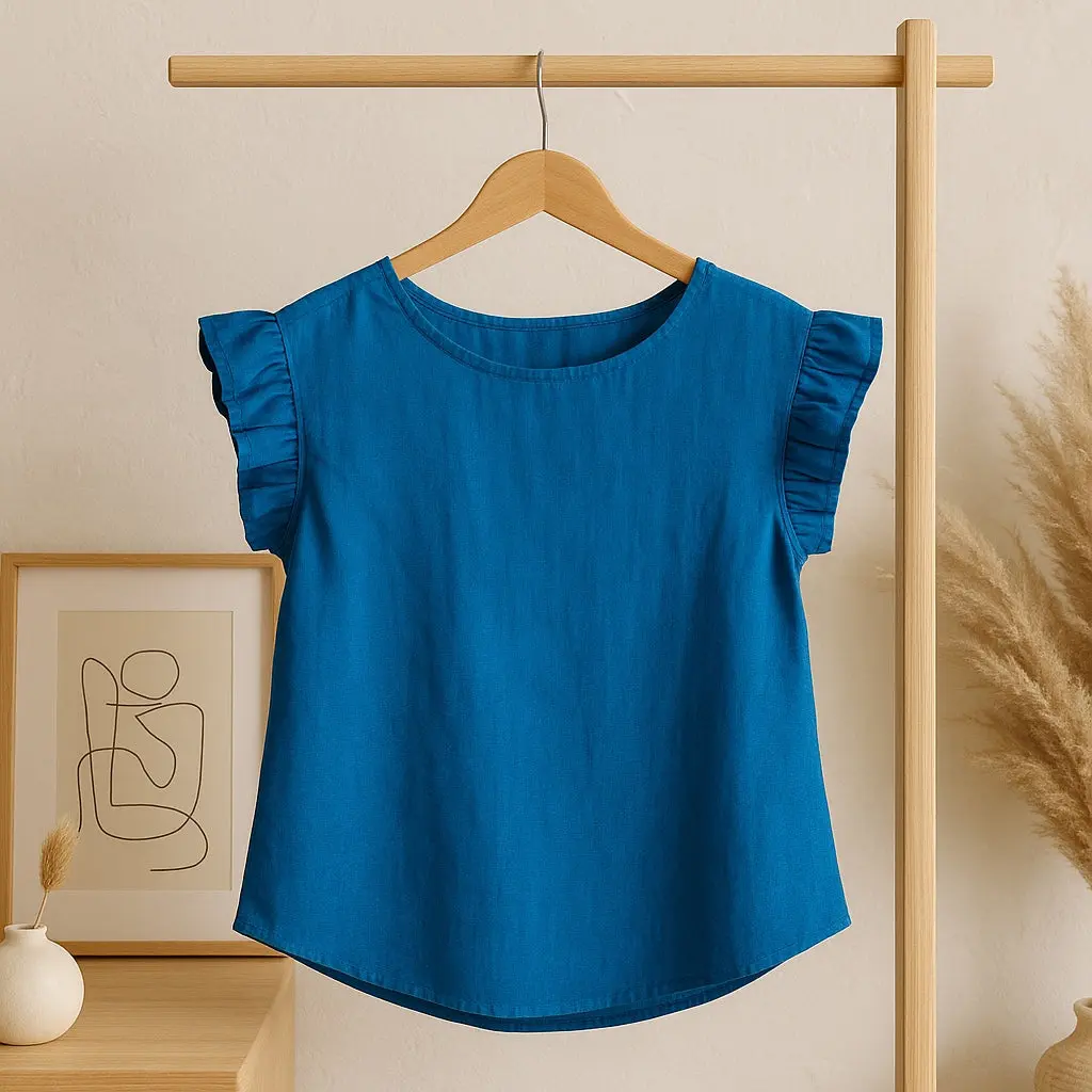 - Manches courtes avec volants : Ajoute une touche féminine et légère.