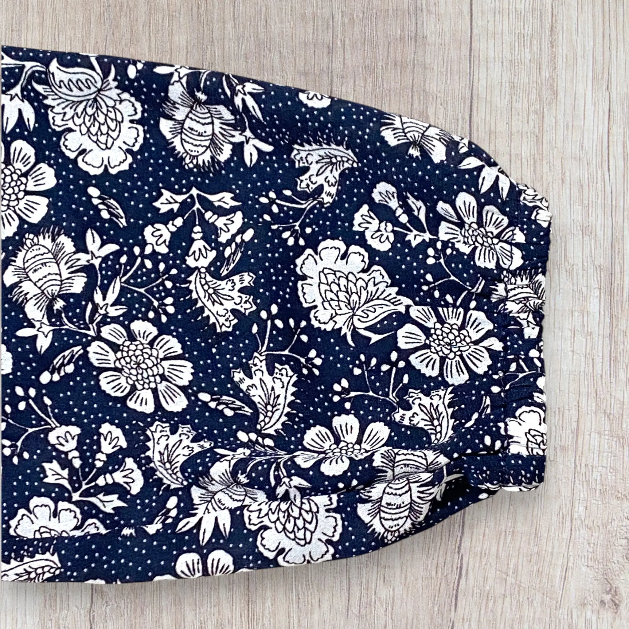 Couleur : Bleu marine à motif fleuri blanc
