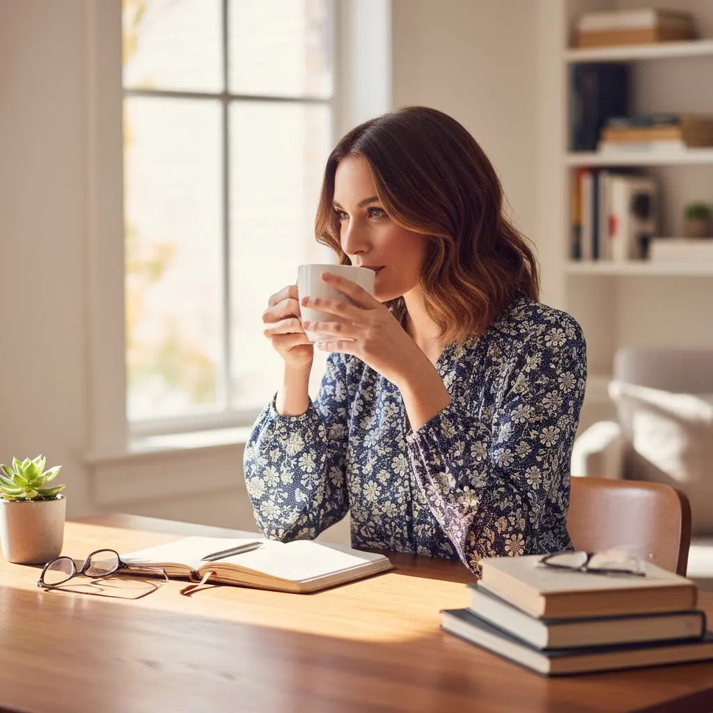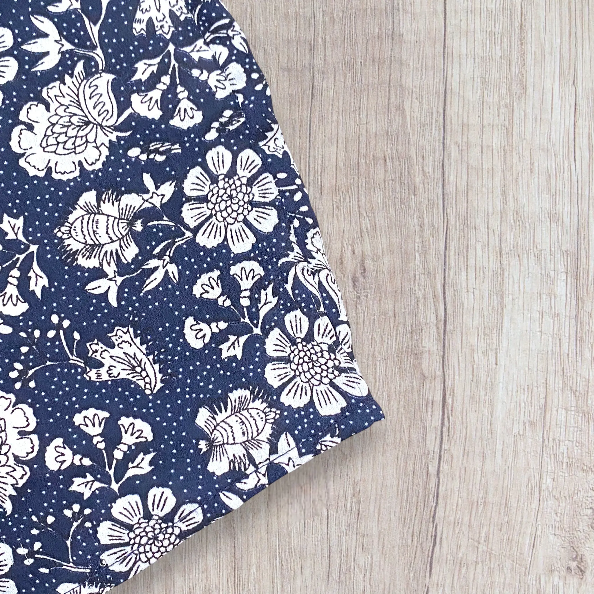 Blouse fluide bleu marine à motif fleuri blanc