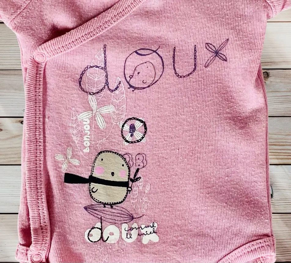 Découvrez l’adorable body bébé fille 1 mois de la marque Kitchoun by Kiabi, alliant confort et charme. Ce body rose est agrémenté de jolis dessins et d’écritures nature et oiseaux en blanc et violet. Avec son col cache-cœur et ses manches 3/4, il est parfait pour les premières semaines de votre bébé. Voici ses caractéristiques principales :