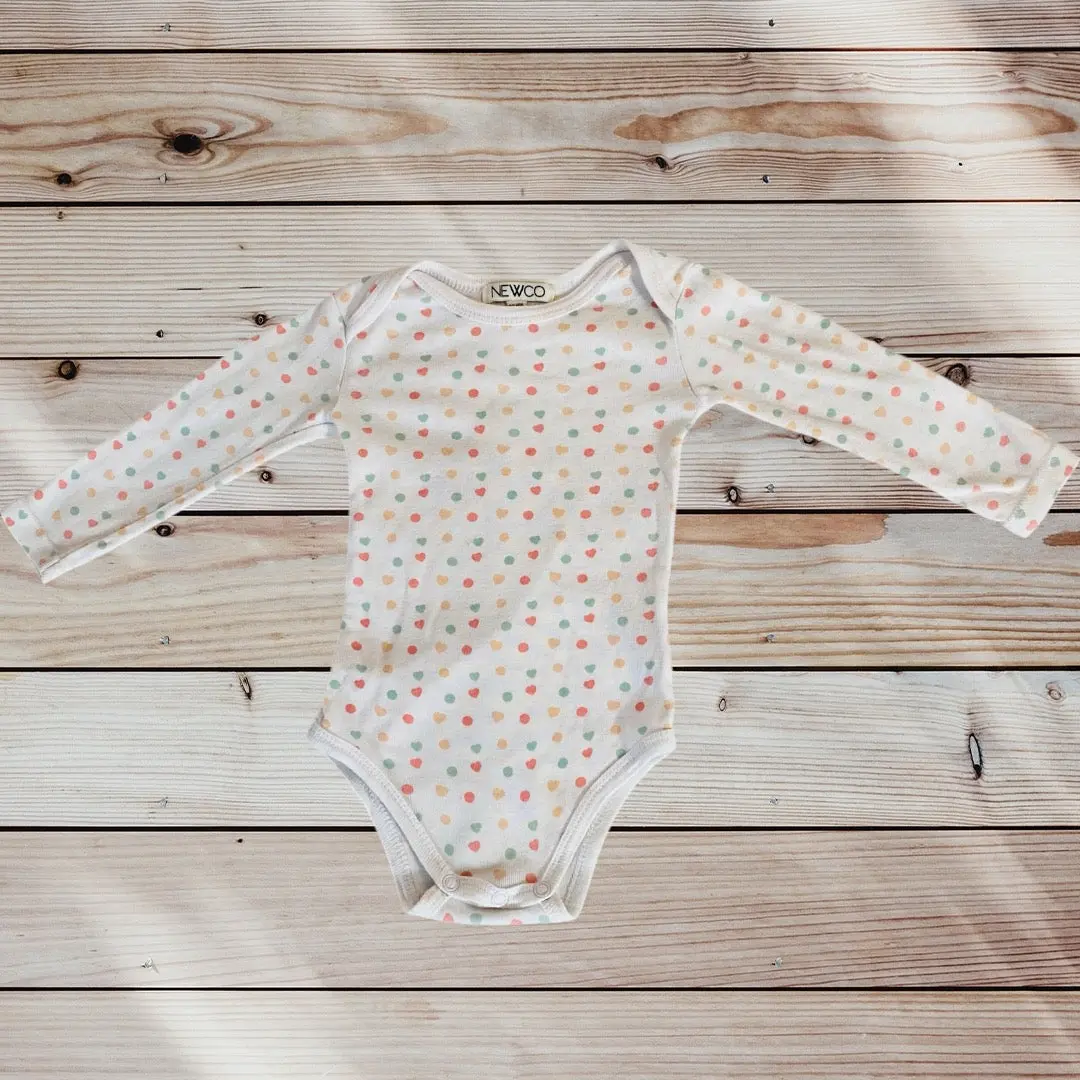 Body Bébé Fille 12 Mois – Newco Blanc à Pois et Cœurs Colorés