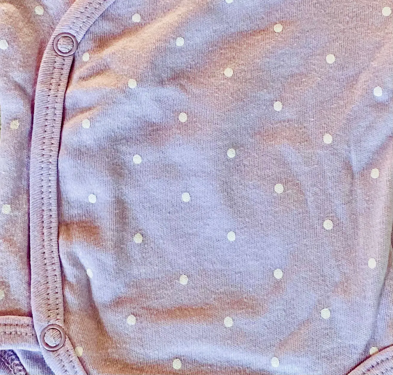 - Couleur : Lilas avec pois blancs pour un look tendre et féminin.