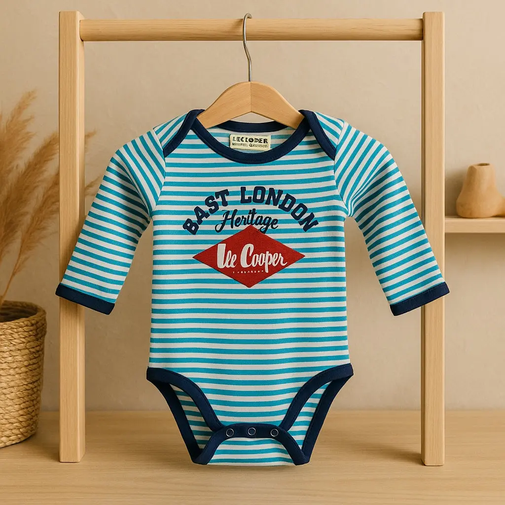 Description :Offrez à votre petit bout de chou le confort et le style avec ce Body bébé garçon manches longues signé Lee Cooper. Conçu pour les garçons de 3 mois, ce body arbore des rayures horizontales blanches et bleues, parfaites pour un look à la fois classique et tendance. Orné de l’inscription “East London Heritage” et du nom de la marque en gros au centre, ce body incarne l’esprit authentique de Lee Cooper. Son col rond et sa confection en matériaux doux garantissent un confort optimal pour votre bébé tout au long de la journée.