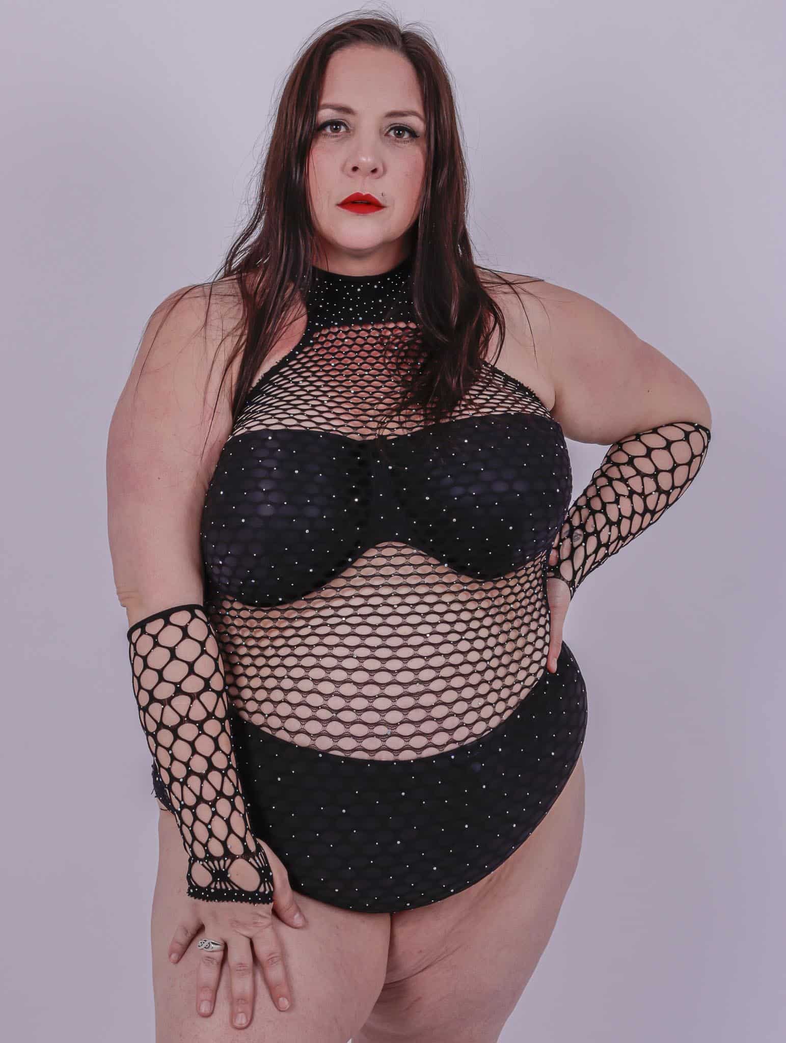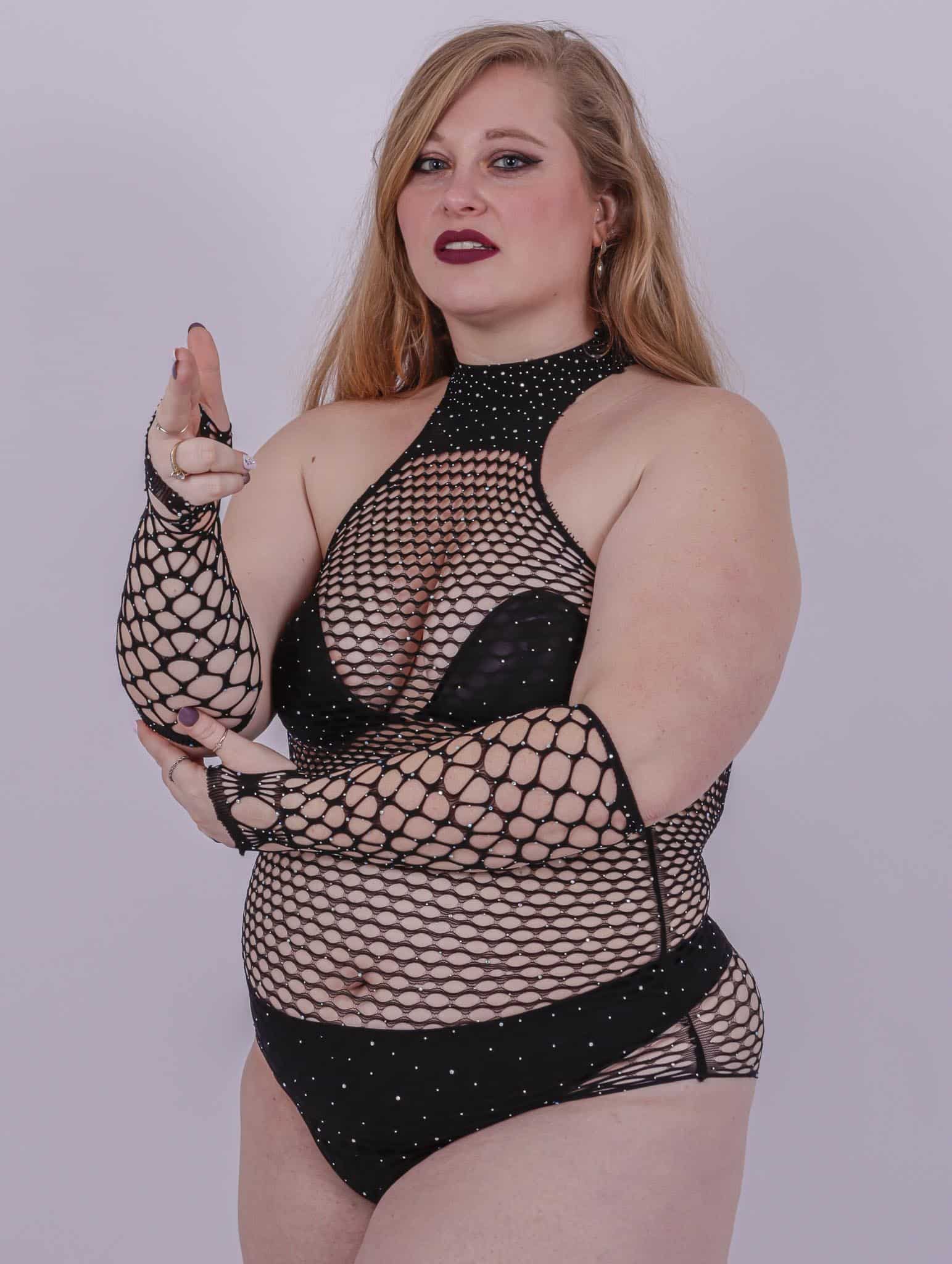 Body résille strass avec mitaines Taille unique convenant jusqu’à une taille 52