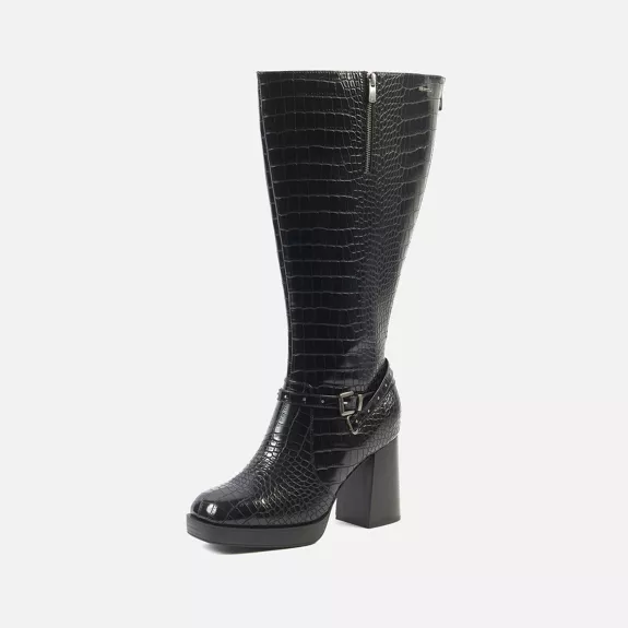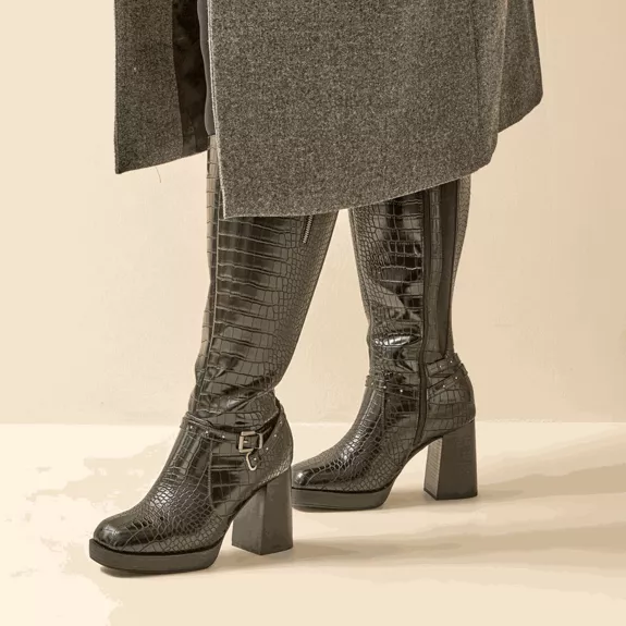 Bottes à talons pour mollets larges 3XL Romy croco noir – Gabylou