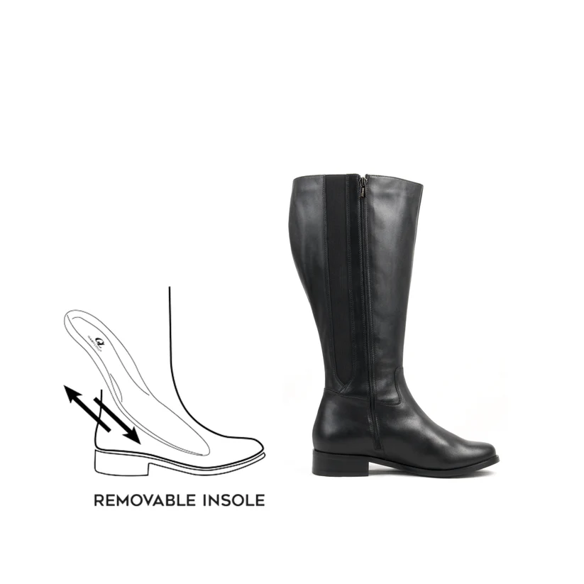 Le modèle Paris allie élégance et confort, conçu pour les femmes avec des mollets larges. En cuir de haute qualité, il possède une doublure en textile et une semelle extérieure antidérapante. La semelle intérieure, amovible, permet l’ajustement ou l’utilisation de semelles orthopédiques. Avec un tour de mollet 2XL, il intègre un élastique d’aisance sur la tige, offrant 1 à 2 cm supplémentaires. Le talon de 3 cm et la fermeture à glissière assurent un style pratique et raffiné. • – Taille de mollet : 2XL • – Matière dessus (extérieur) : Cuir • – Matière doublure (intérieur) : Textile • –…
