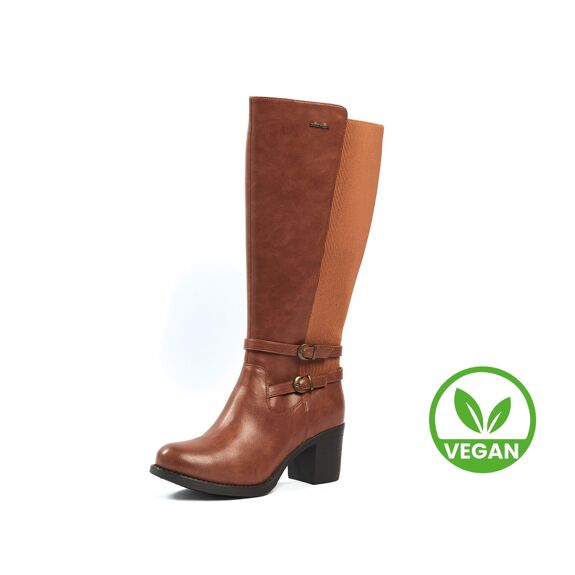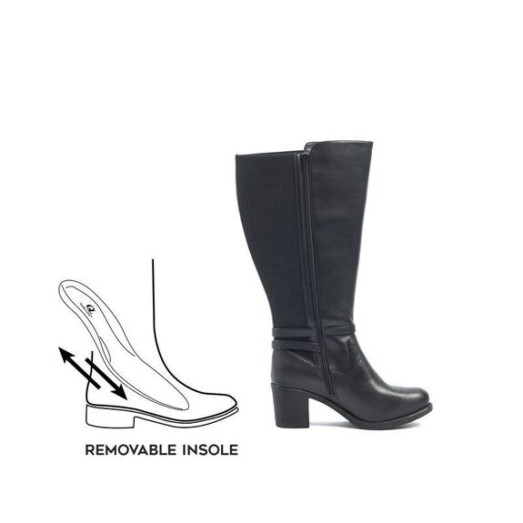 - Ce modèle spécialement conçu pour les femmes qui ont des mollets larges est fabriqué en PU synthétique de haute qualité et monté sur un talon carré. Il convient pour une taille de mollet 2XL.