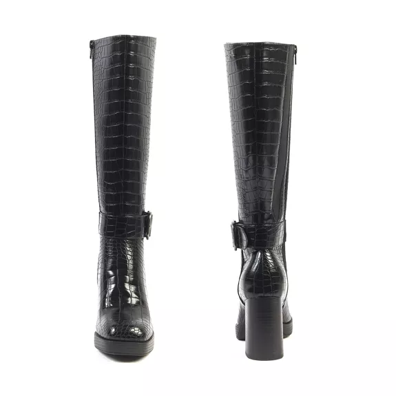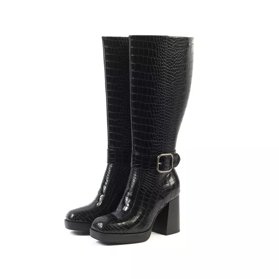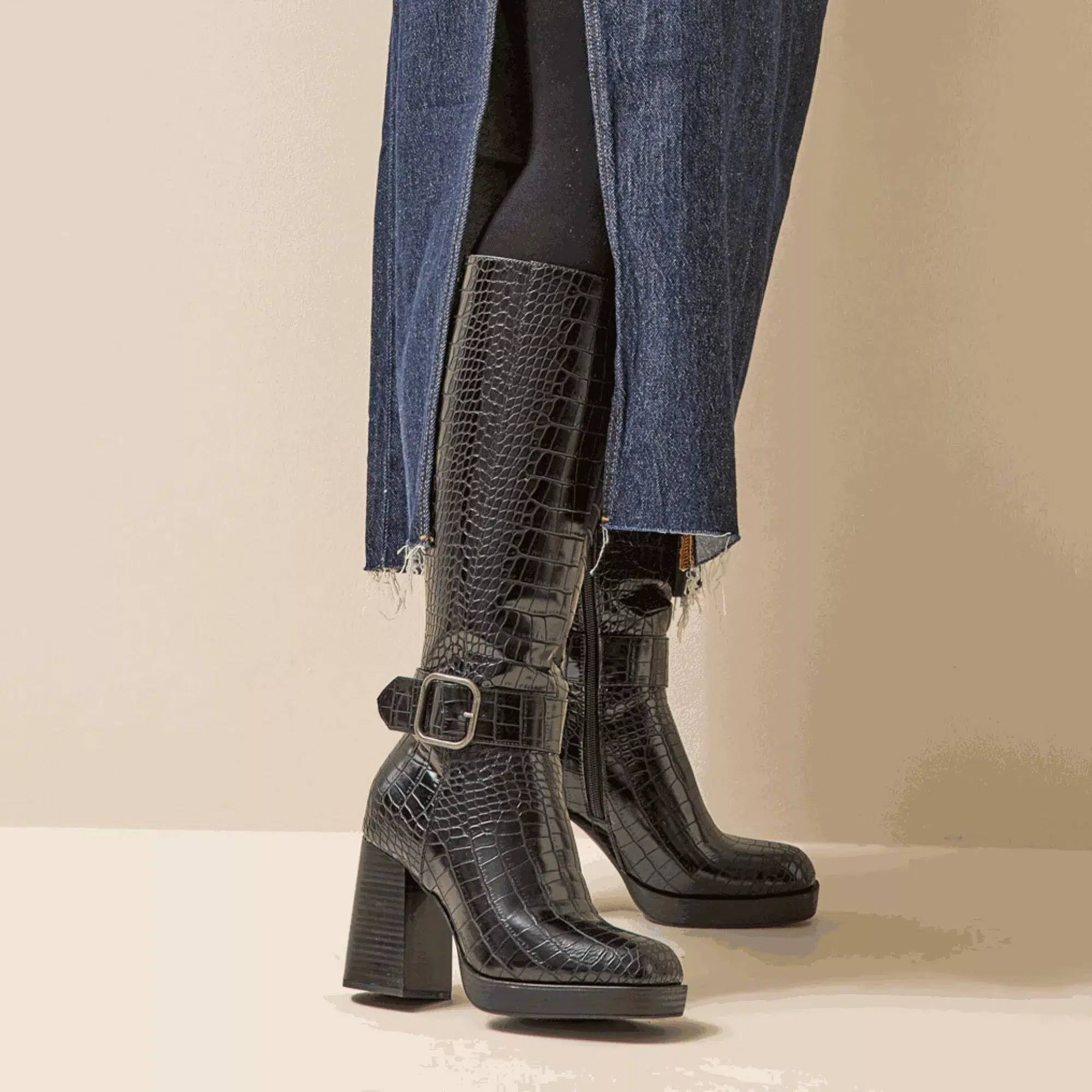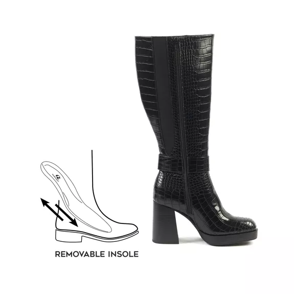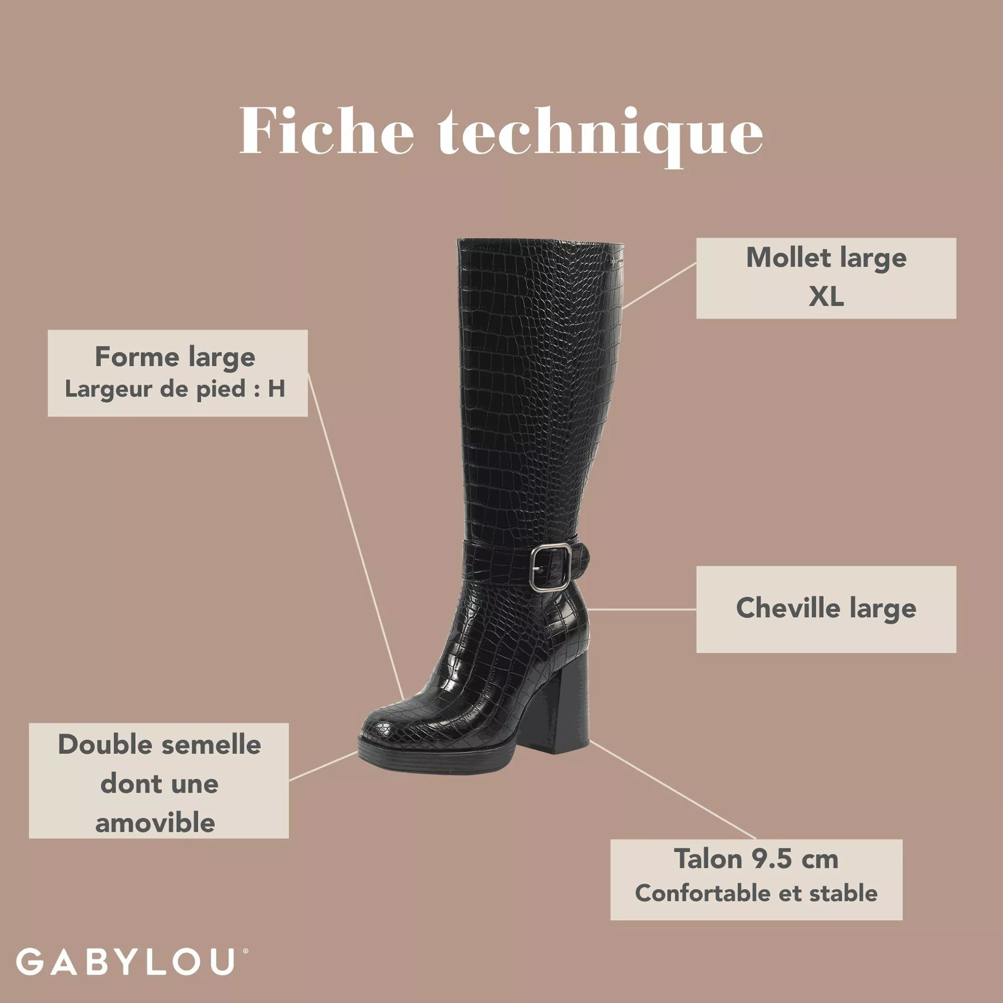 Bottes à talons pour mollets larges 3XL Romy croco noir – Gabylou