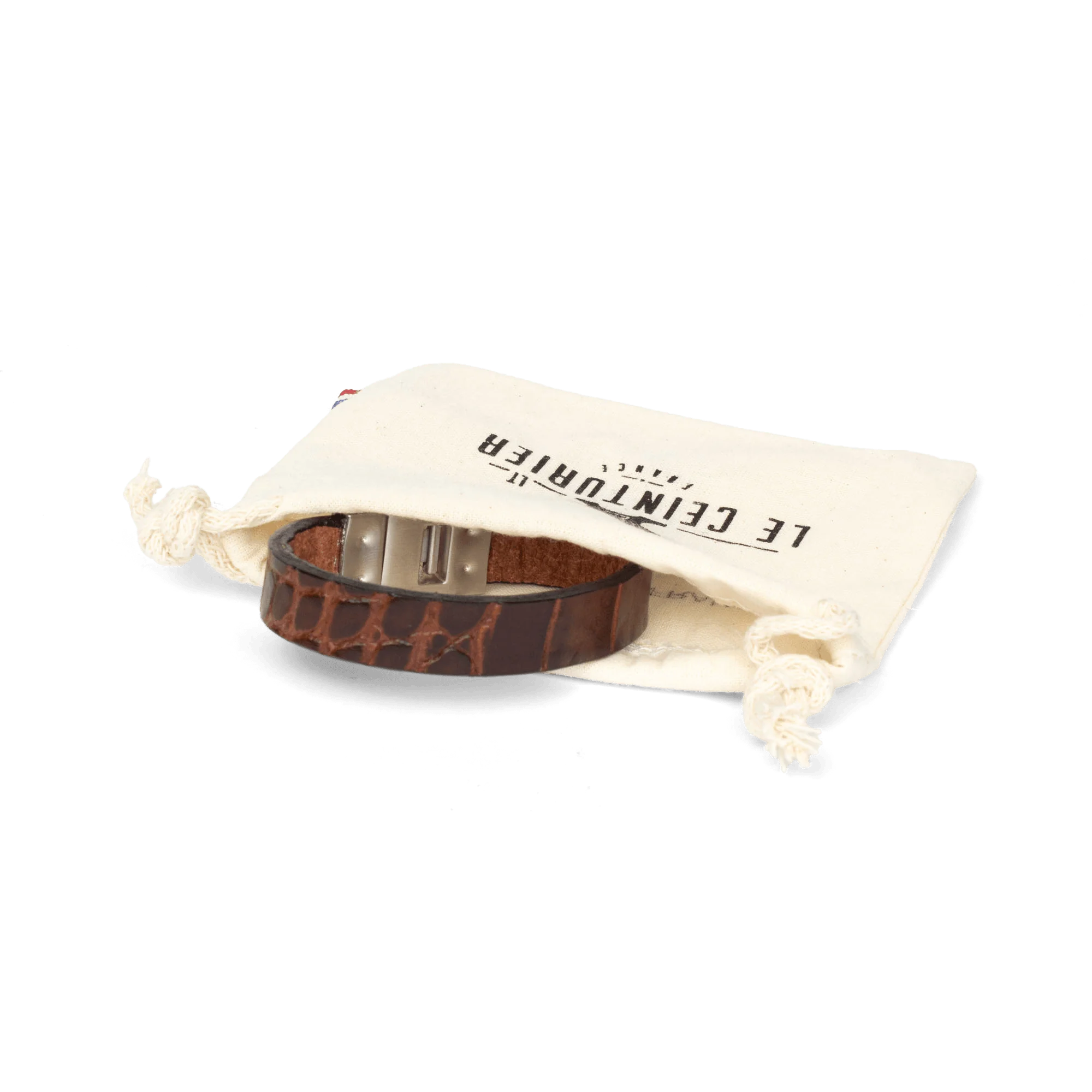 • Logo Le Ceinturier moulé sur la tranche du fermoir
