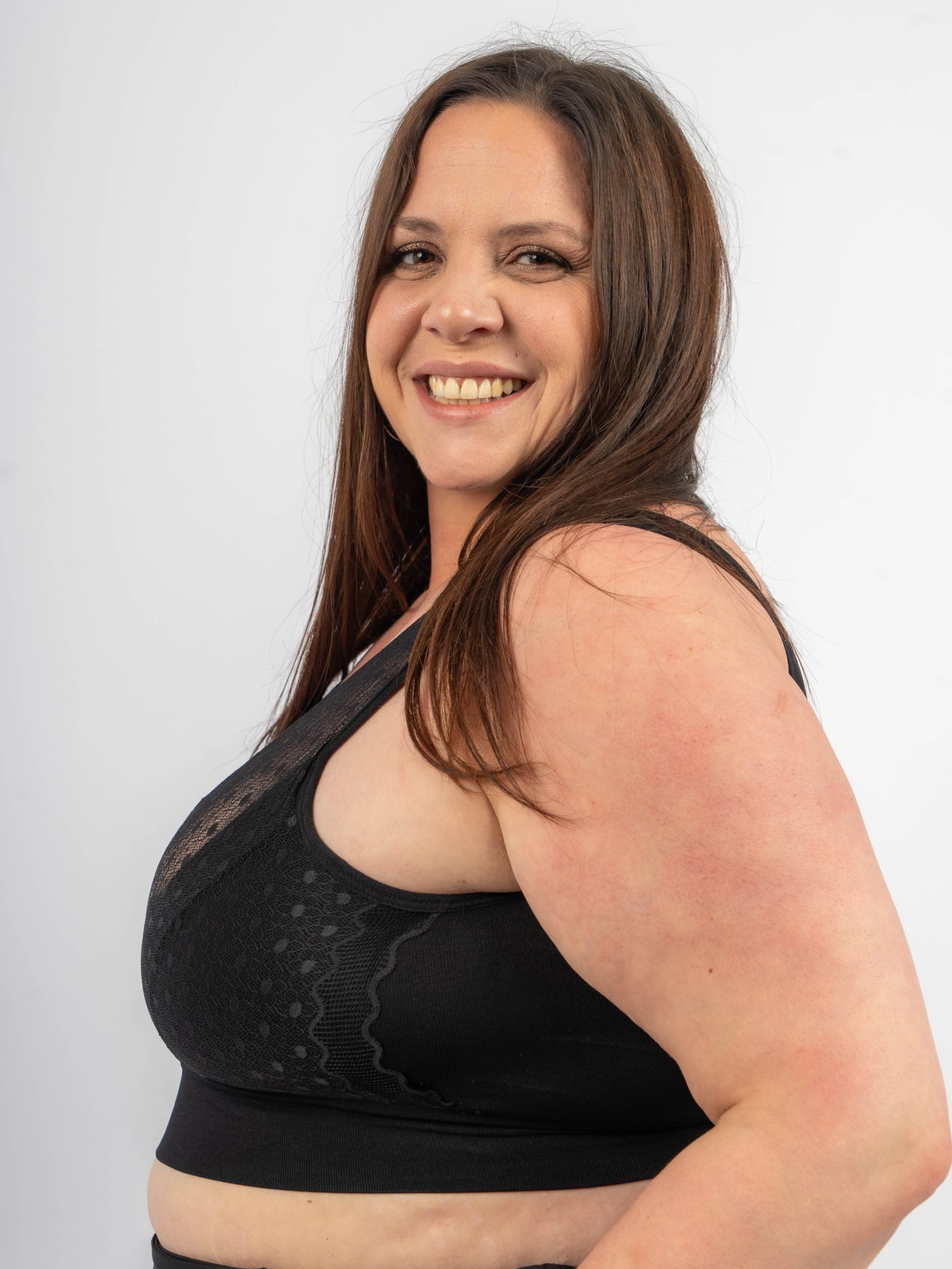 Brassière empiècement plumetis Mousse de rembourrage amovible Convient jusqu’à une taille 52 Peut se porter simple ou par dessus le soutien gorge pour habiller un décolleté Le modèle fait du bonnet H et porte habituellement une taille 50/52
