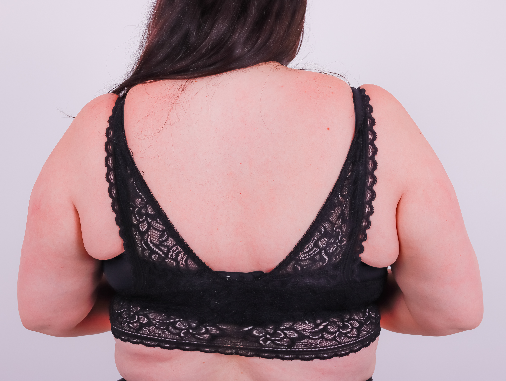 Brassière harnais en dentelle noire Convient jusqu’à une taille 52 ou 54 si pas trop fortes poitrines Le modèle porte habituellement du 105H et du 50/52 Attention, il ne s’agit pas d’un modèle qui maintient