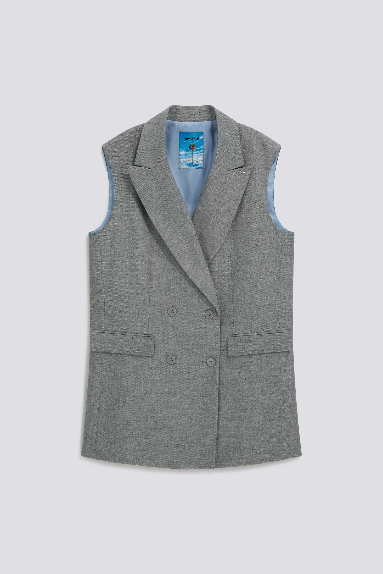 Un perfetto equilibrio tra raffinatezza sartoriale e attitude contemporanea, questo blazer gilet doppio petto dal comfort fit è realizzato in twill misto viscosa sale e pepe per un look sofisticato ma versatile. Perfetto da indossare da solo o con i pantaloni coordinati per un power suit d’impatto, è l’alleato ideale per look eleganti con un twist cool.