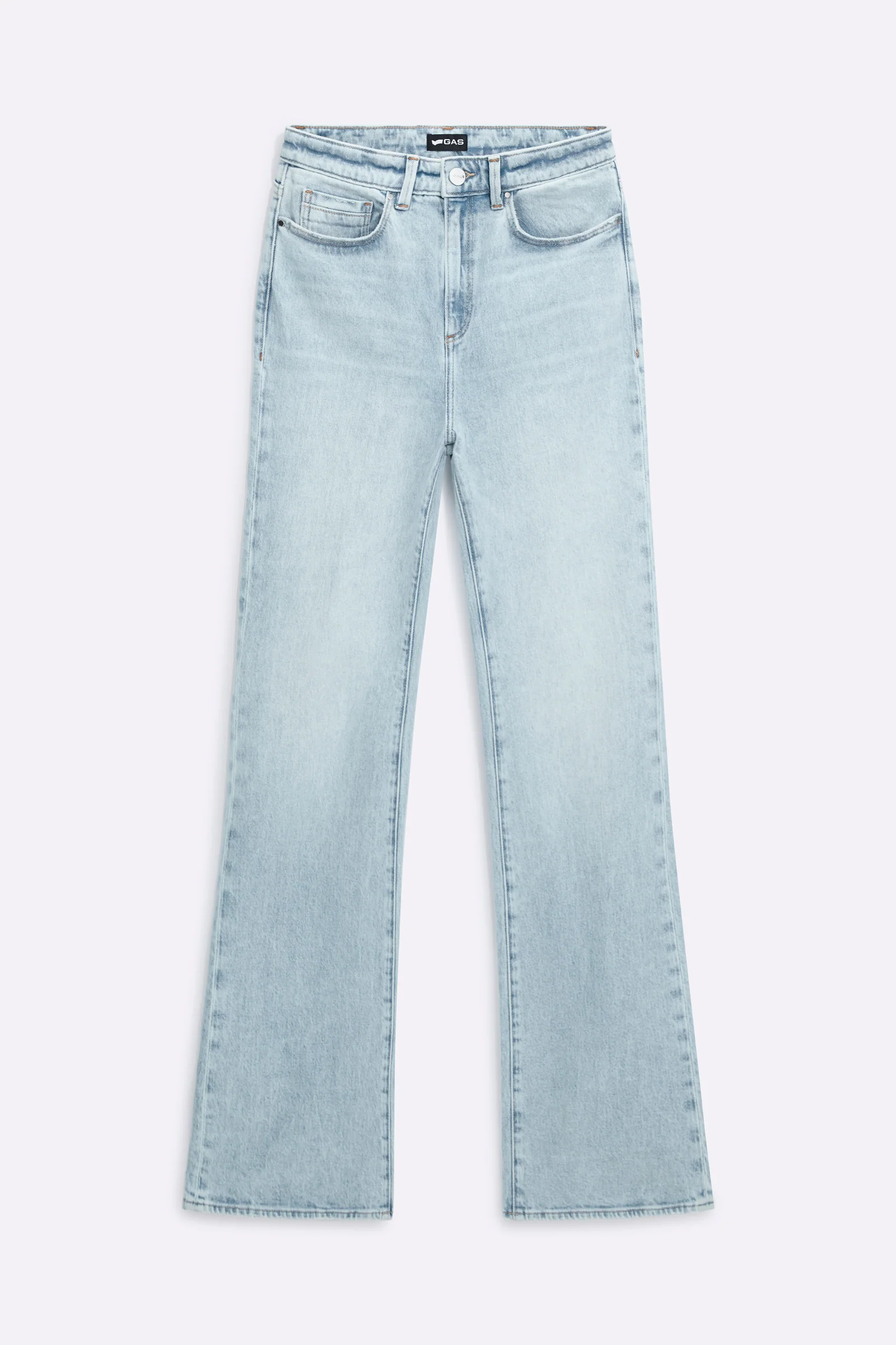 Denim donna 5 tasche dal fit flare, realizzato in tessuto da 9 oz con lavaggio enzimatico per un look autentico e sofisticato. Il design a vita alta e la gamba che si allarga dal ginocchio donano un’eleganza senza tempo, perfetta per completare outfit chic e versatili.