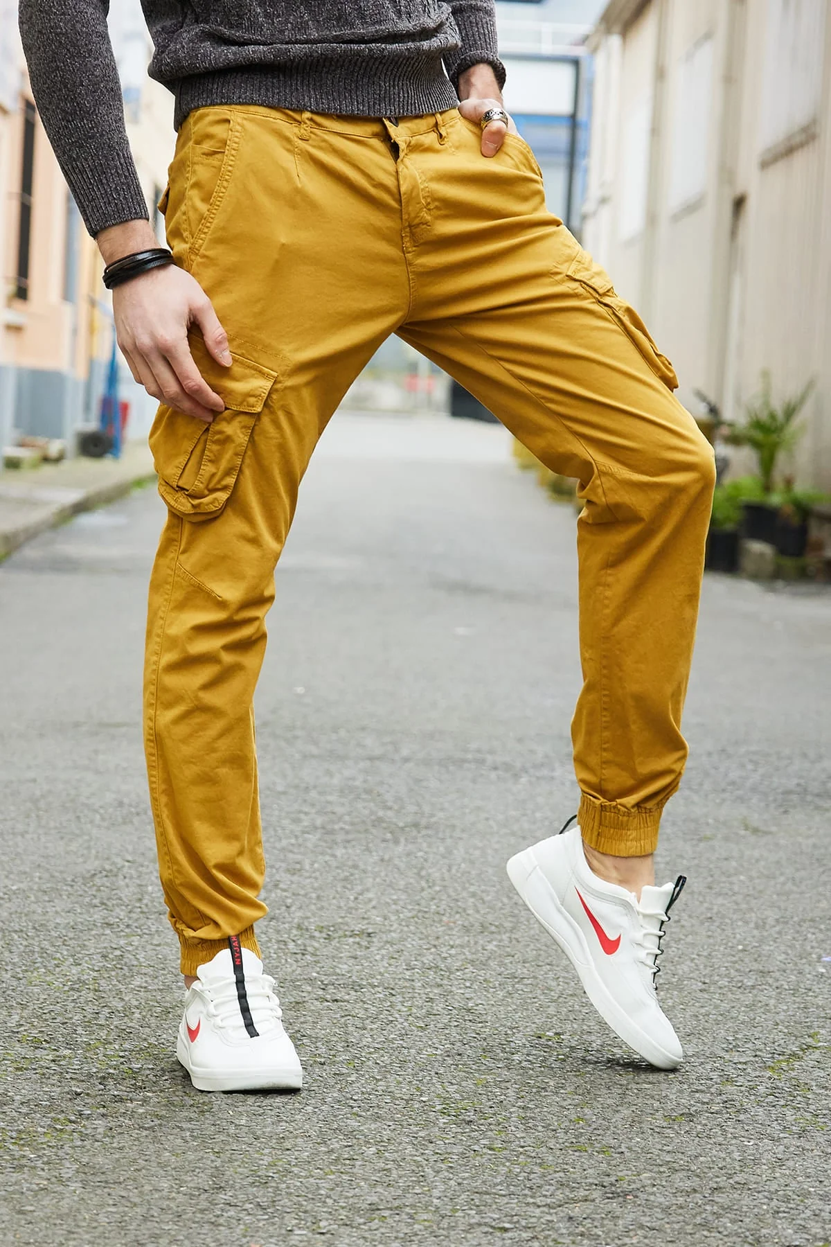 pantalons cargo homme jaune moutarde