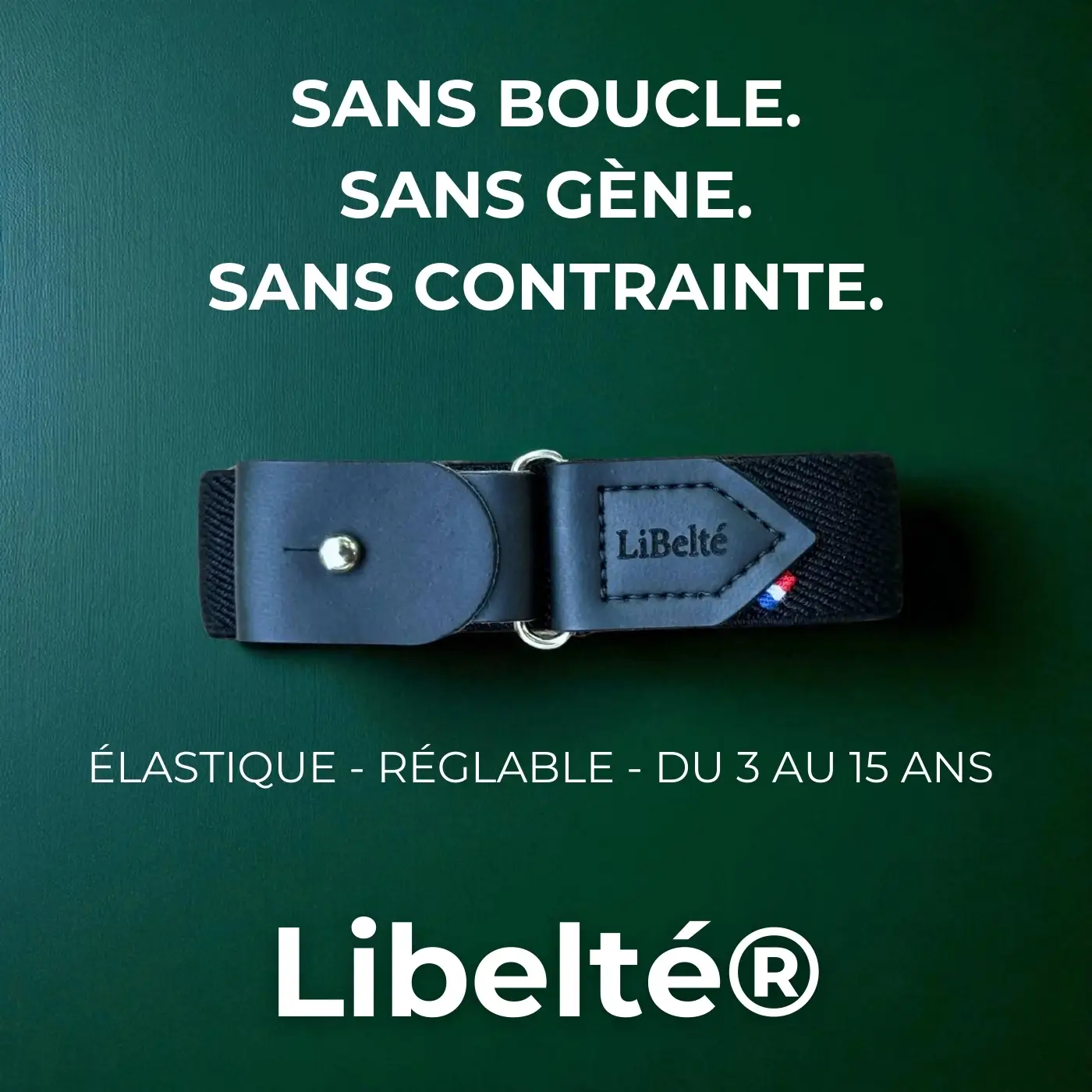La ceinture sans boucle Libelté® modèle noire, c’est une SEULE ceinture pour toute sa croissance.