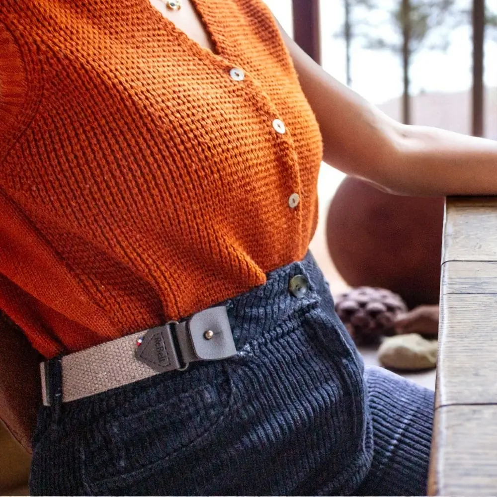 La ceinture sans boucle ReBelt couleur beige souligne avec douceur et discrétion votre tenue pour votre plus grand confort. Libérez votre respiration.
