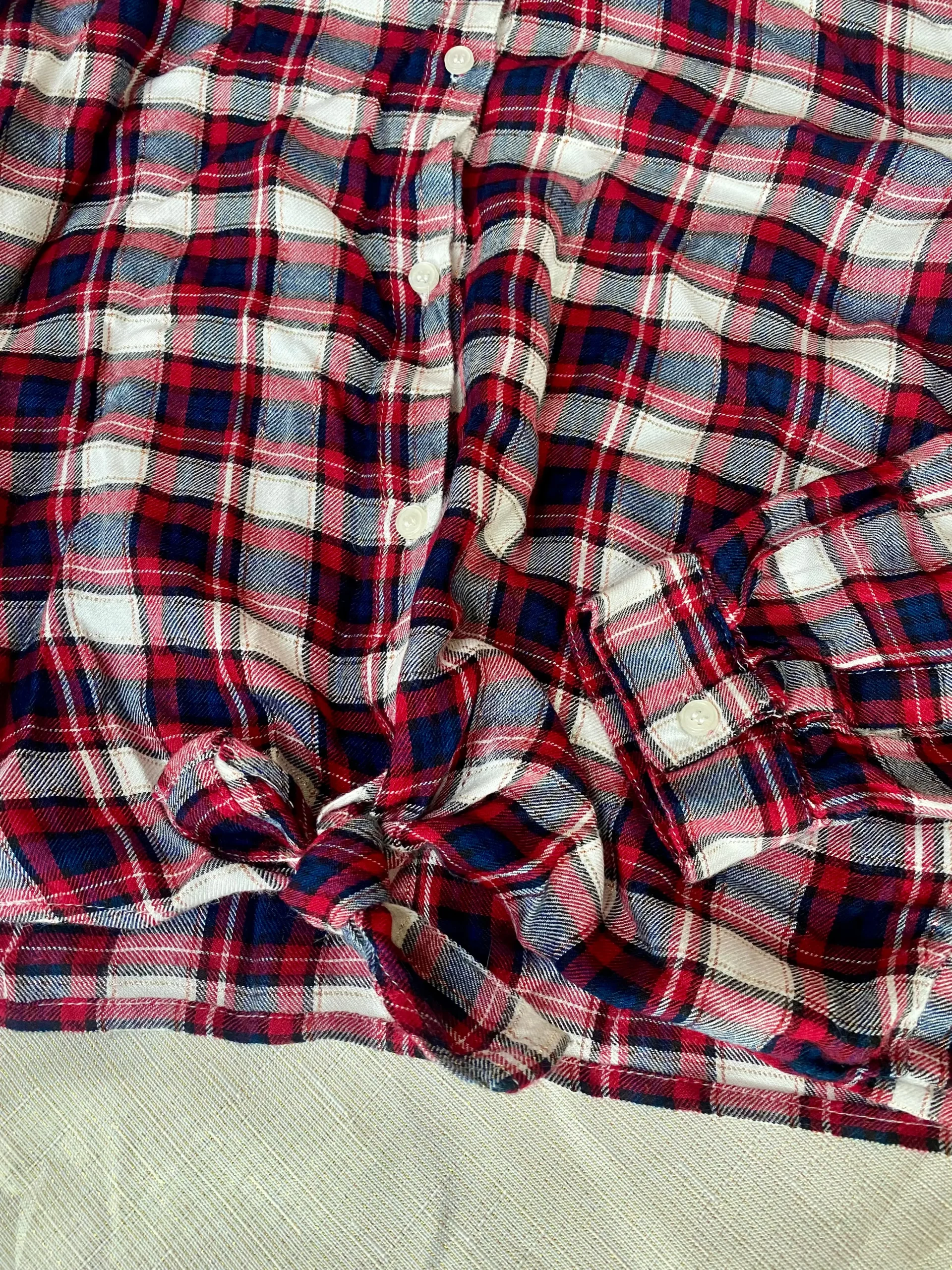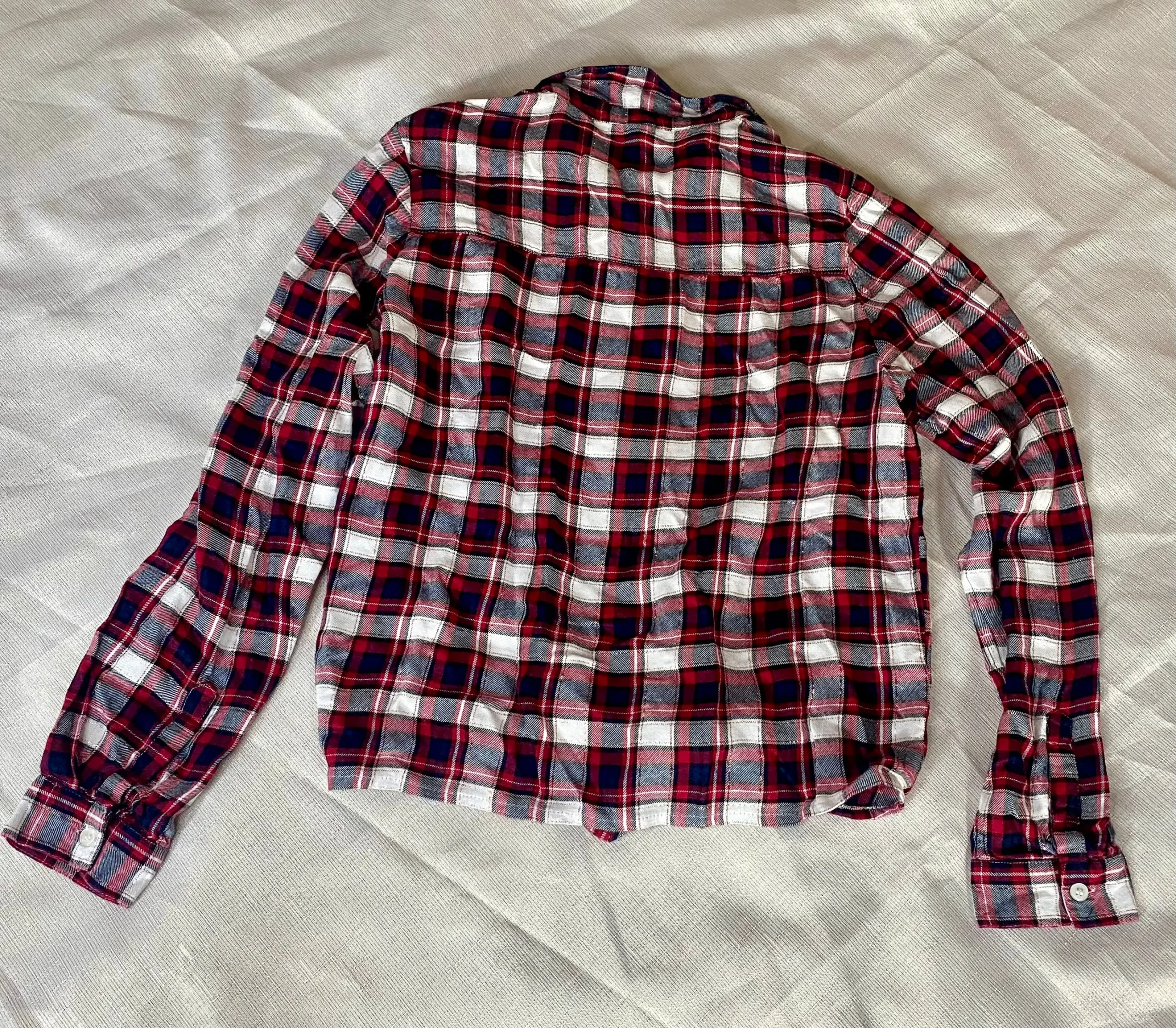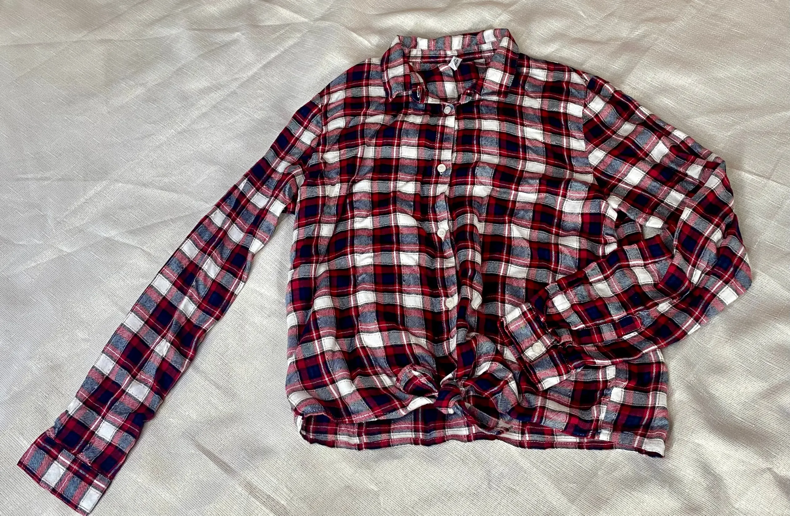 Cette chemise présente un motif à carreaux rouge, blanc et bleu marine, rehaussé de fils pailletés pour un éclat subtil. Les boutons blanc nacré ajoutent une finition élégante et classique. Les manches longues offrent chaleur et confort, tandis que le bas de la chemise peut être noué pour un style décontracté et moderne. Parfaite pour toutes les occasions, cette chemise est un must-have pour les jeunes fashionistas.