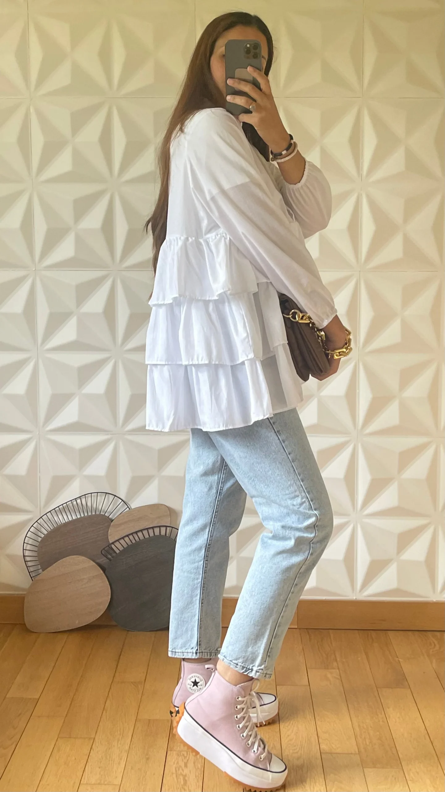 Chemise à volants étagés – Blanc