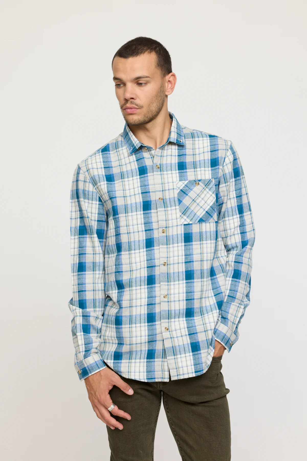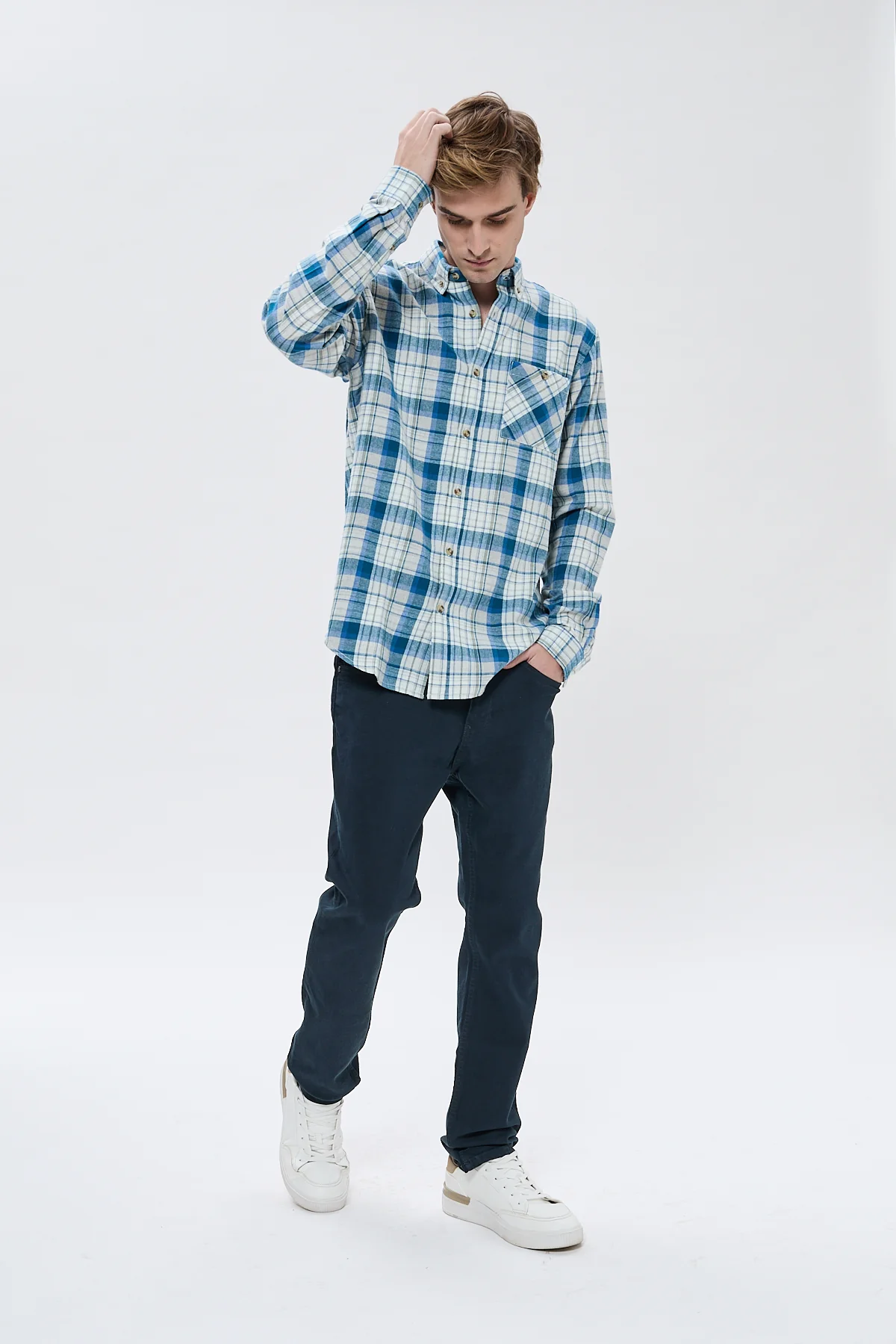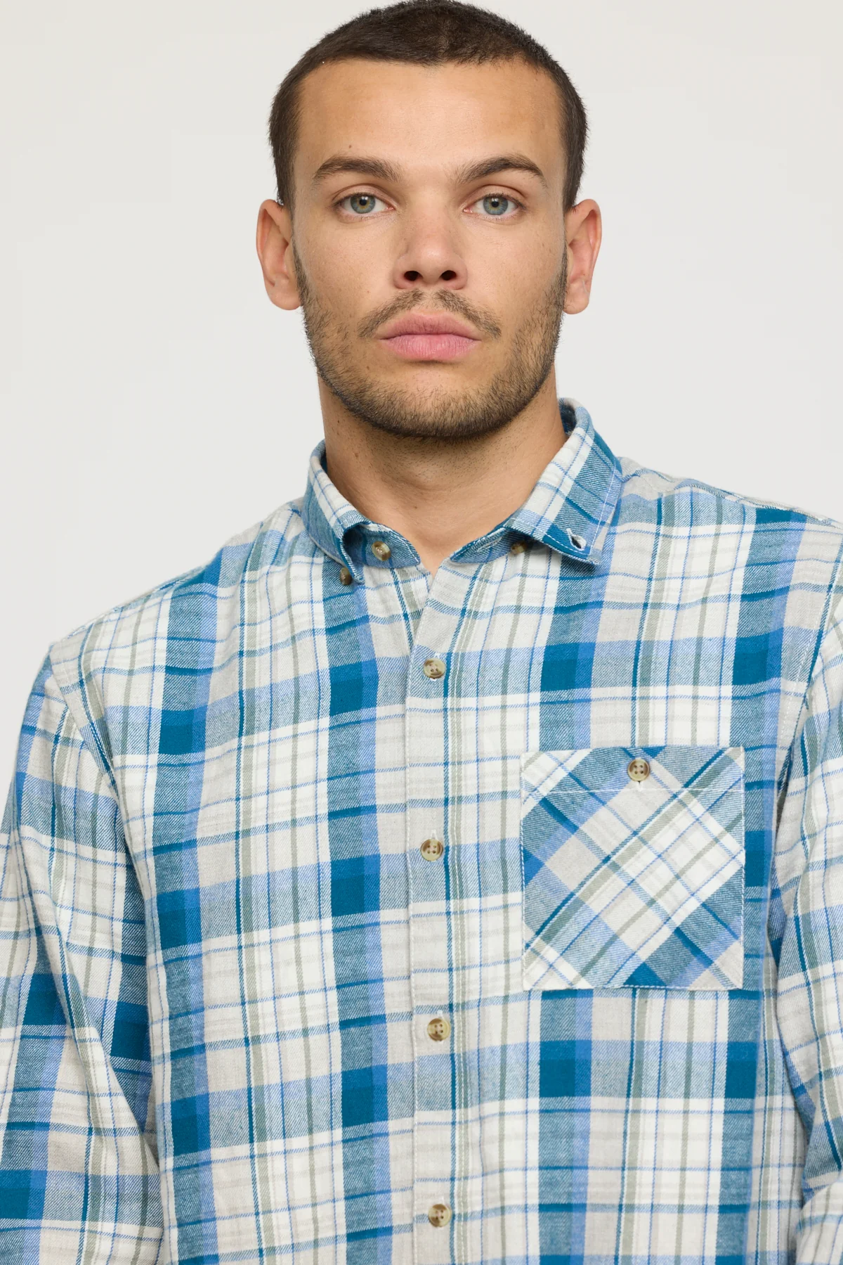 Son motif à carreaux imprimé, intemporel et structurant, lui donne un style affirmé, idéal pour un look décontracté ou plus travaillé selon l’association. Elle est dotée d’une ouverture boutonnée, de manches longues et d’une coupe comfort pour un porté fluide. La poche plaquée sur le buste gauche, pratique et stylée, est la touche utilitaire qui complète le modèle.