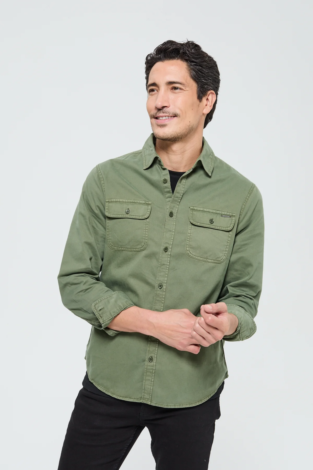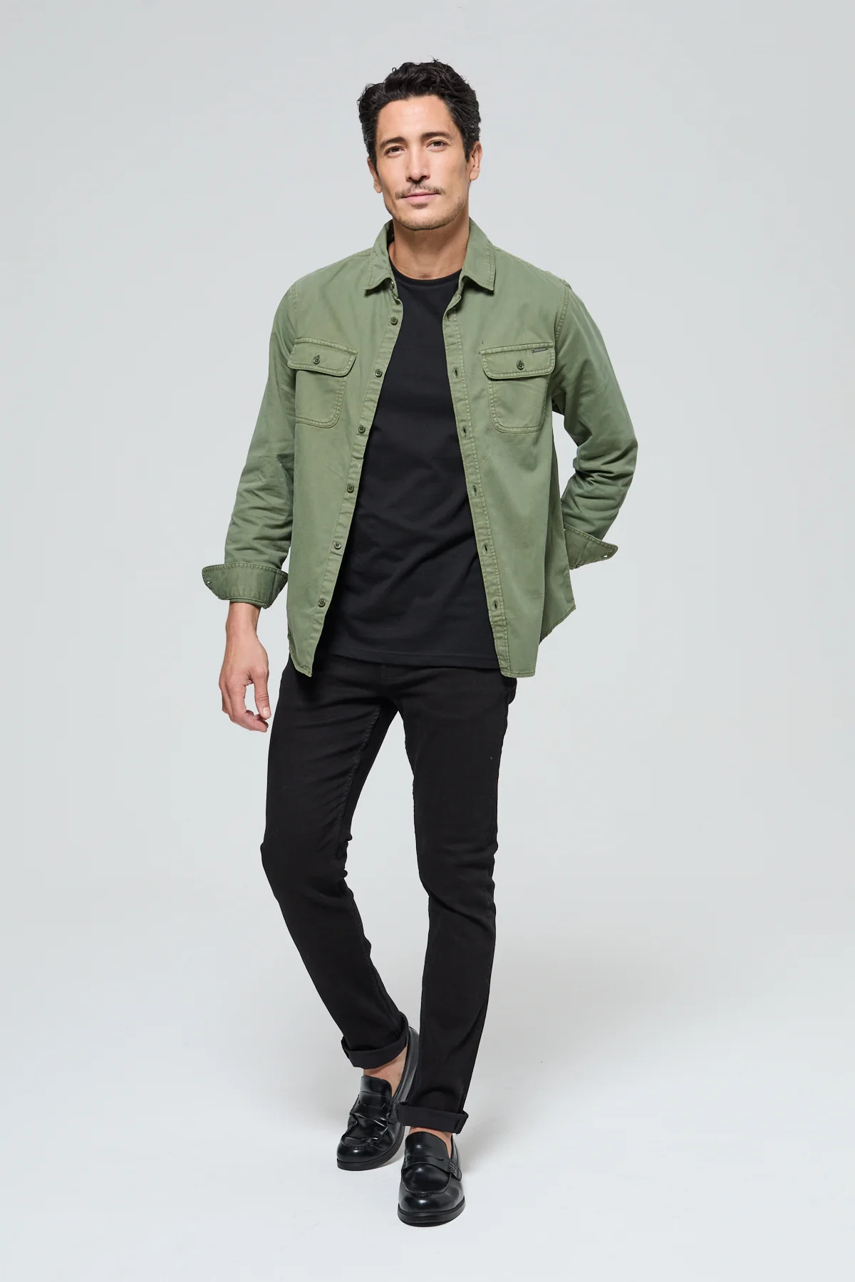 Avec ses manches longues, sa coupe regular et ses deux poches poitrine à rabat, elle adopte les codes emblématiques du style western. Les coutures contrastées et les détails discrets renforcent son caractère, tout en assurant une silhouette structurée.