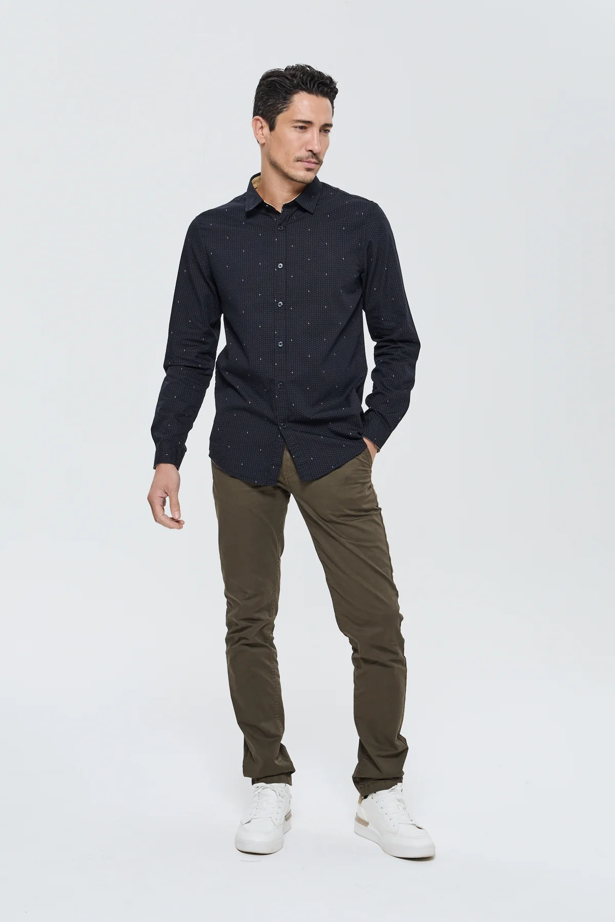Chemise homme confectionnée en 100% coton, elle offre un confort doux et une respirabilité optimale tout au long de la journée.