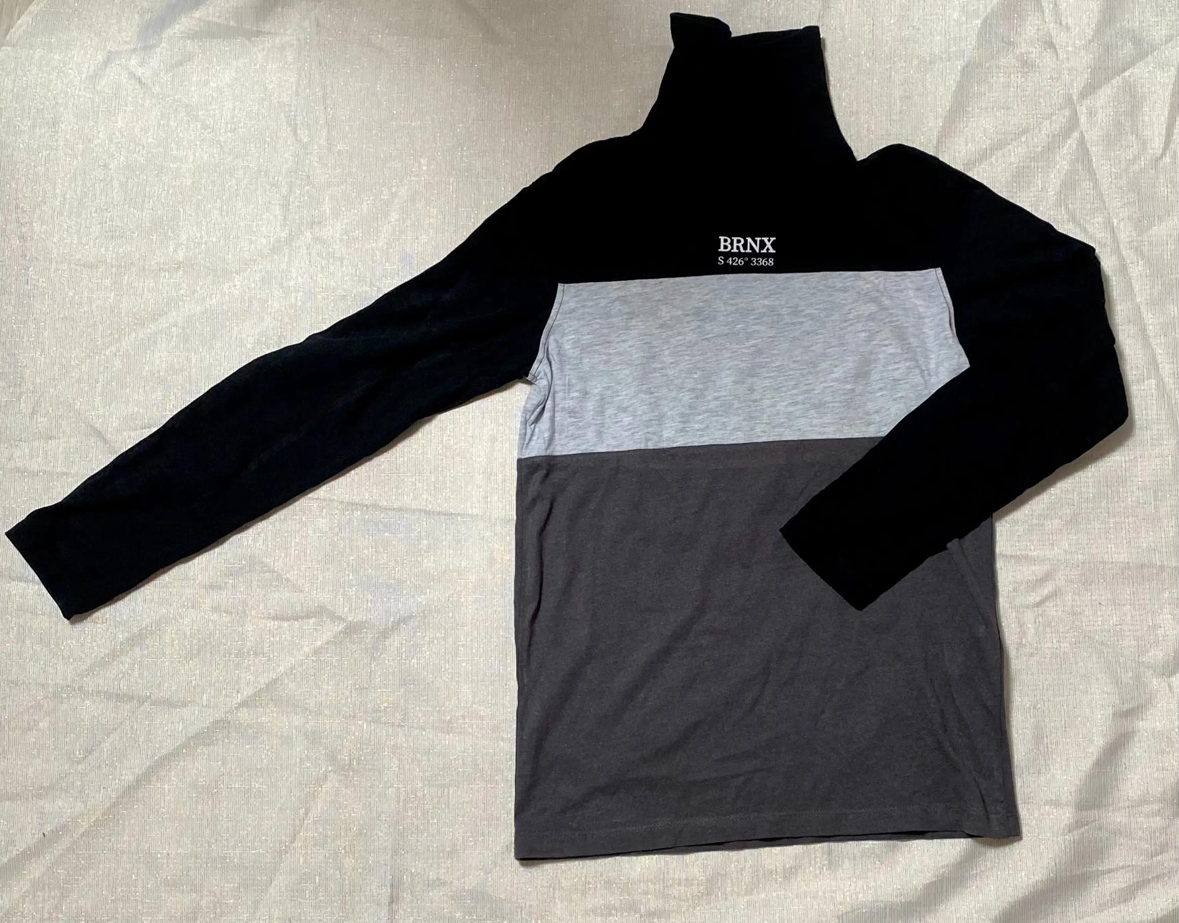 - Design Élégant : Le mélange de noir, gris clair et gris foncé associé à une écriture blanche confère à ce col roulé un look moderne et sophistiqué, idéal pour les jeunes hommes soucieux de leur style.