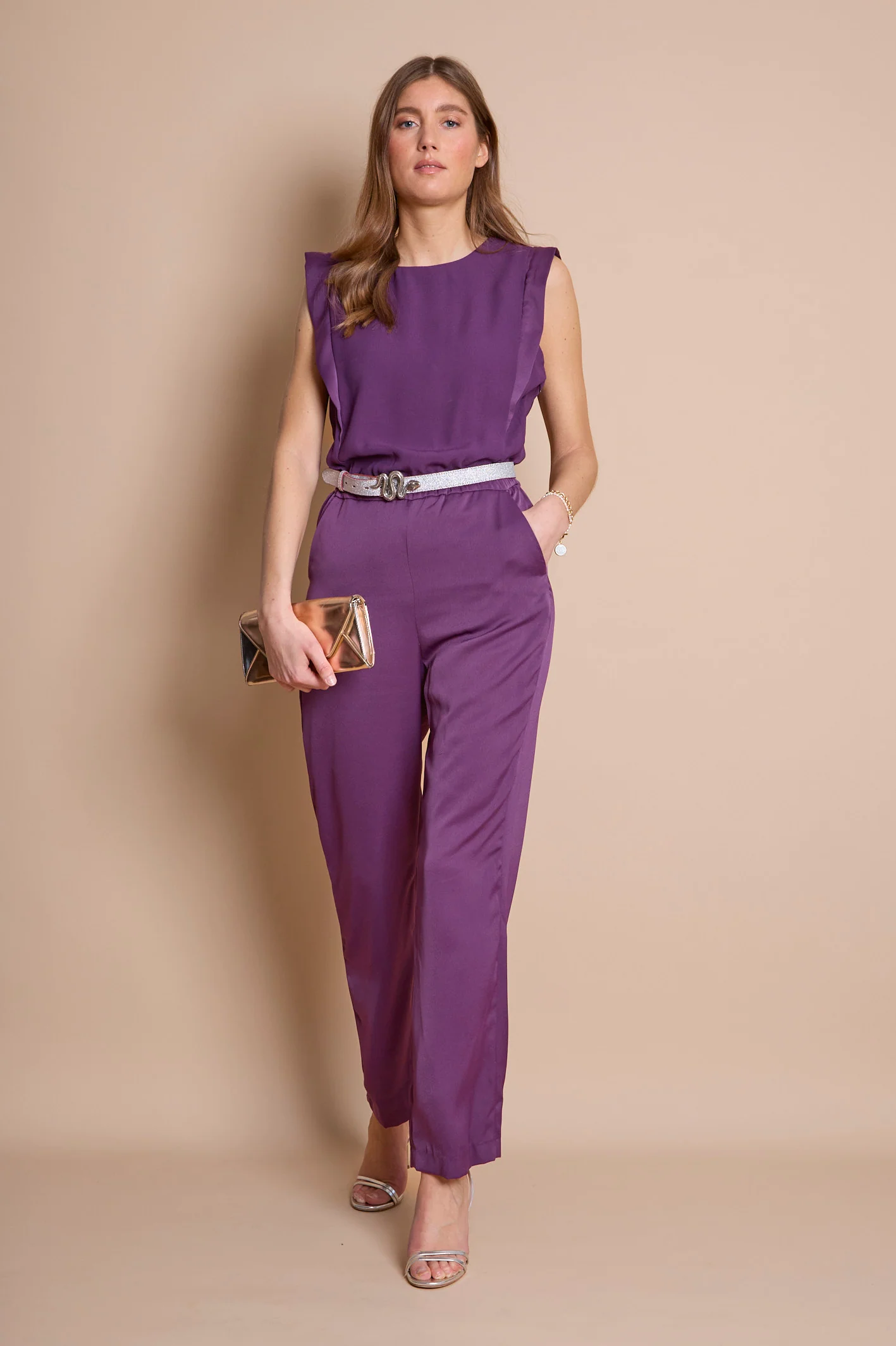 Découvrez la combi « ROME », proposée en noir et en violet foncé. Une coupe épurée, associée à un jeu de matières mat / brillant, qui mettra votre silhouette en valeur. Associez-la en journée avec des baskets pour un look branché et le soir avec un escarpin pour une sortie en ville