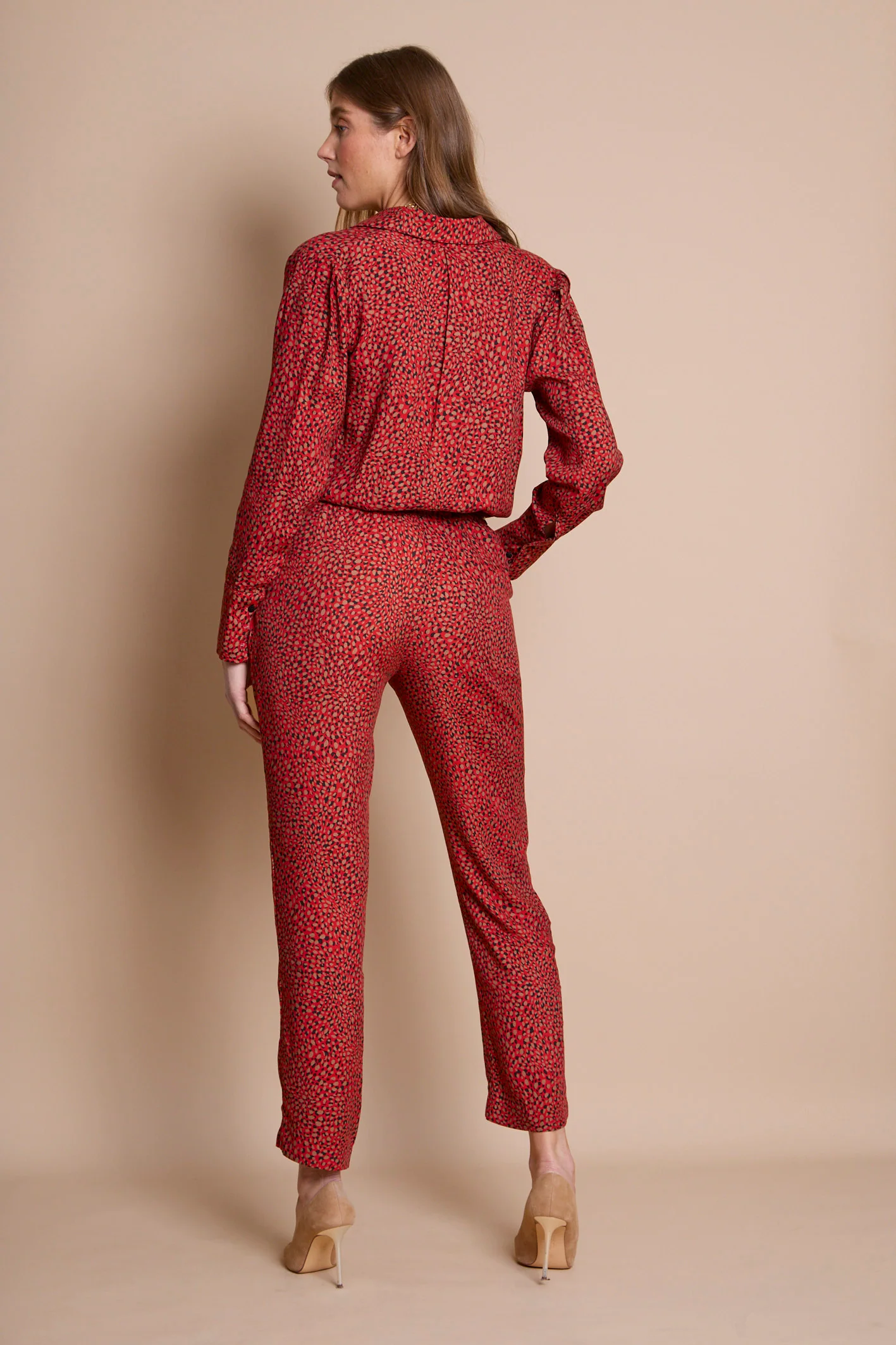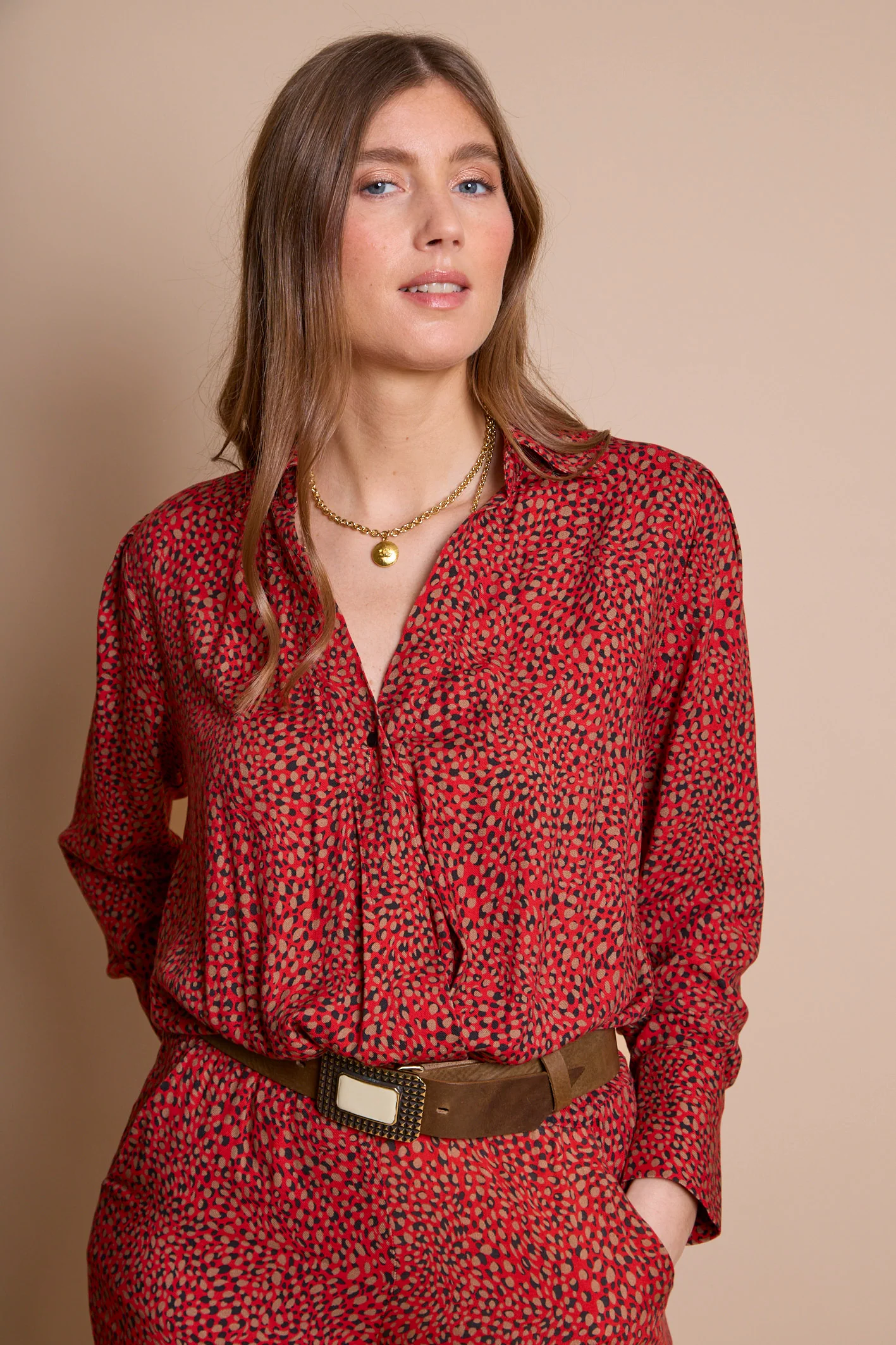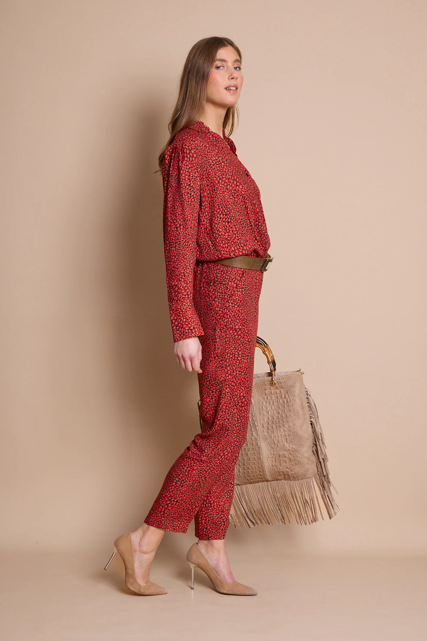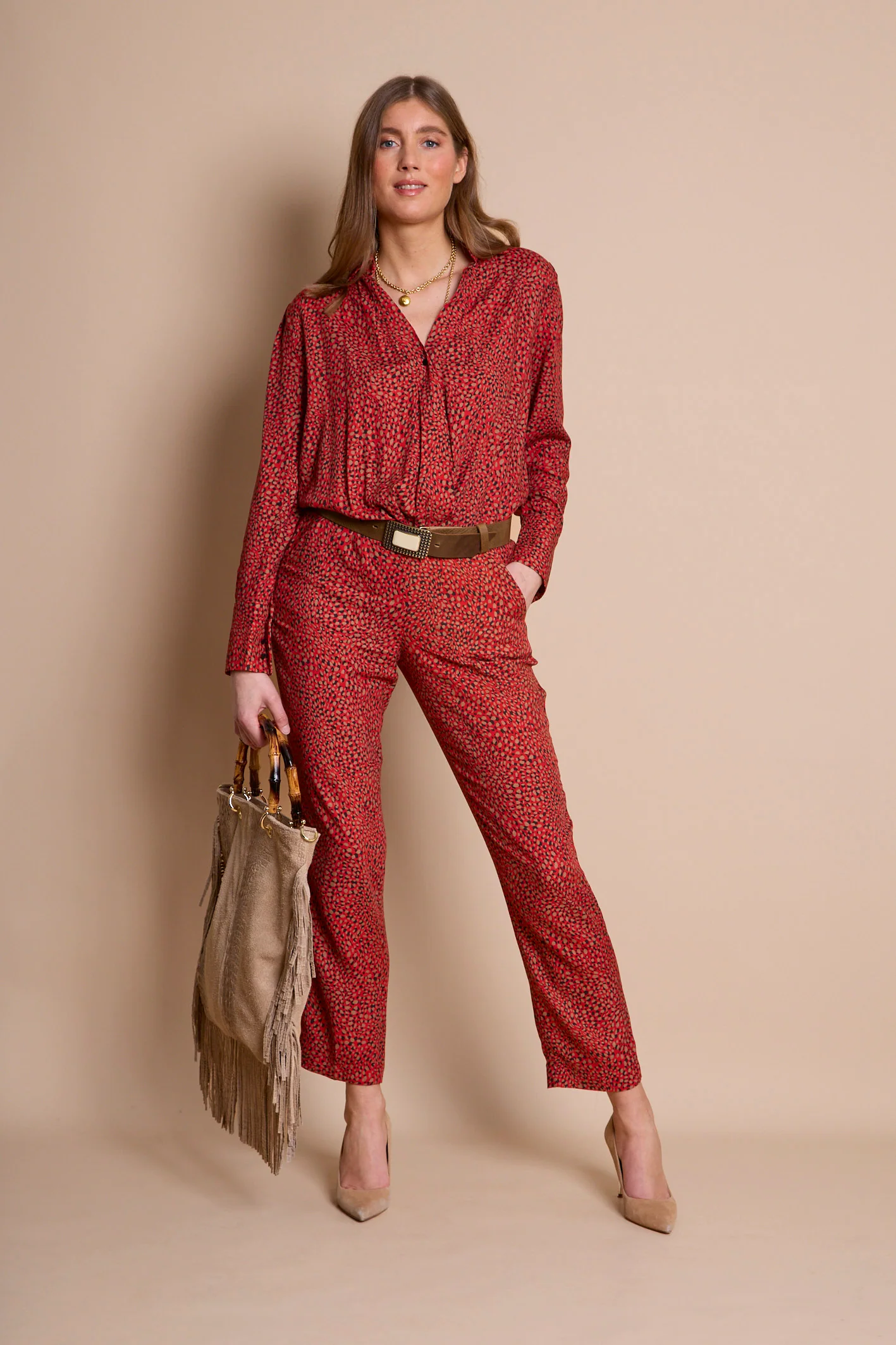 Craquez pour la combi «TOKYO » ! Sa matière fluide et douce est super agréable au porter. On adore au choix son imprimé tachiste rouge ou esprit léopard en camel. N’hésitez pas à la porter ceinturée pour marquer davantage votre taille