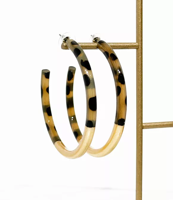 Créoles en corne véritable – Léopard et feuilles d’or
