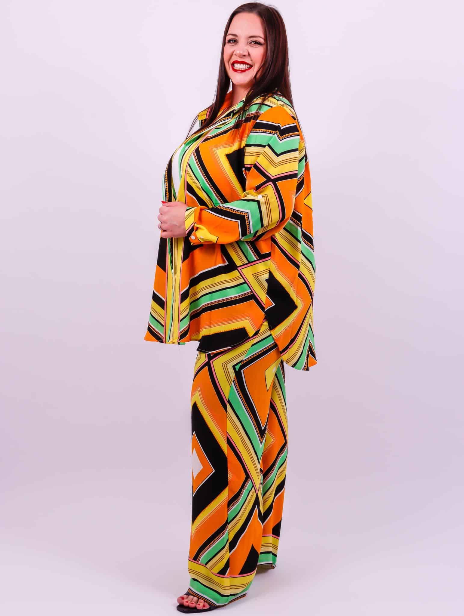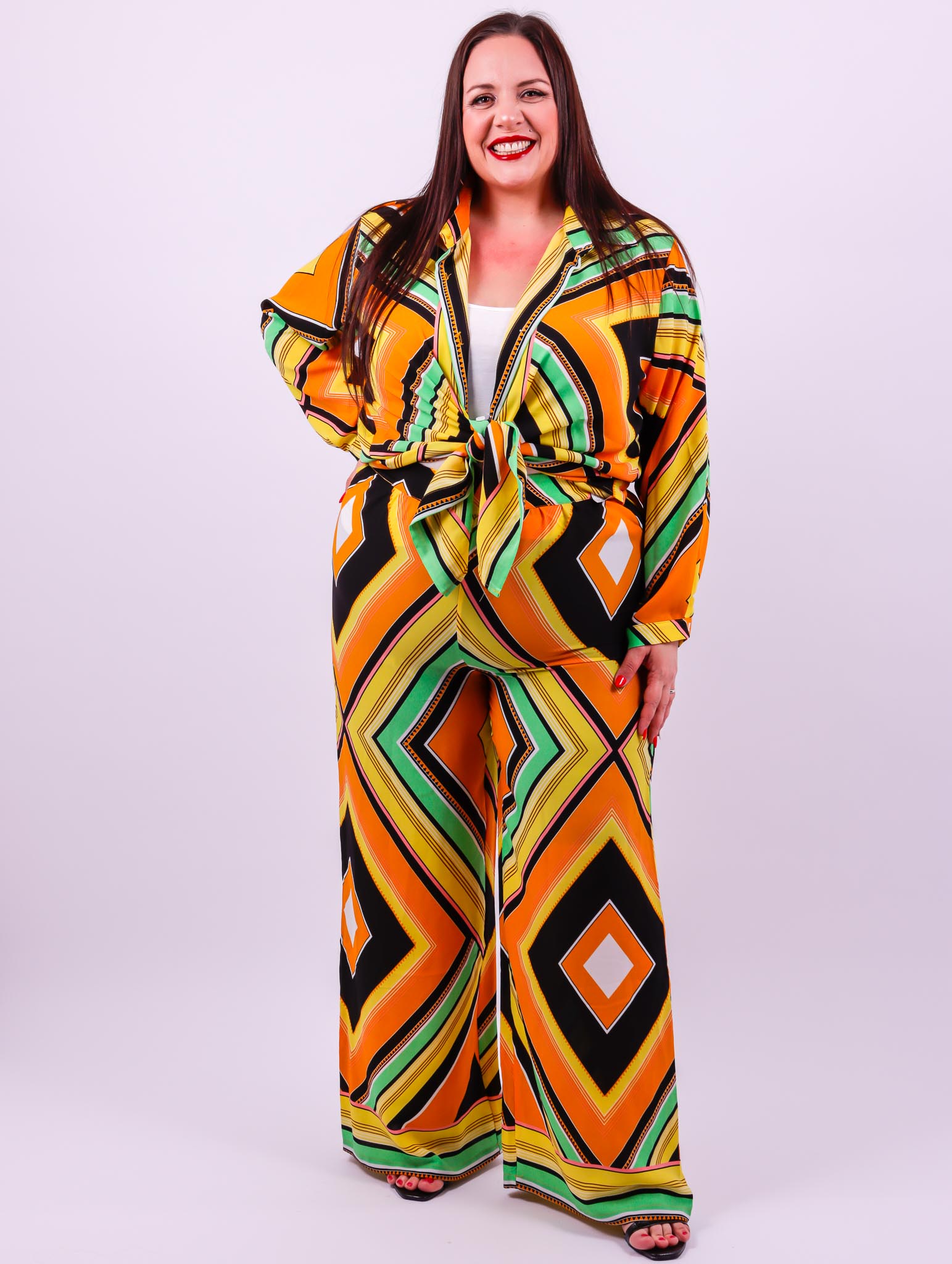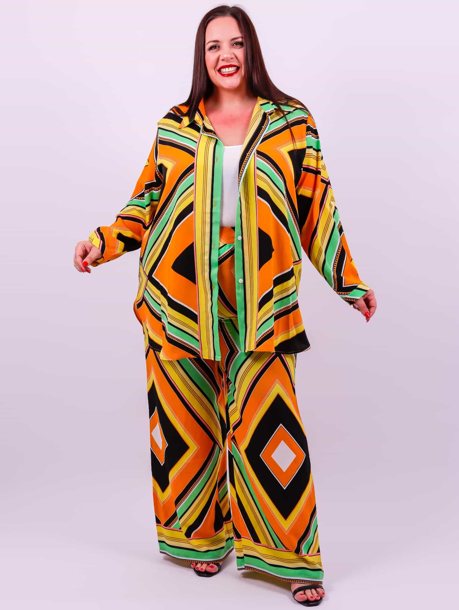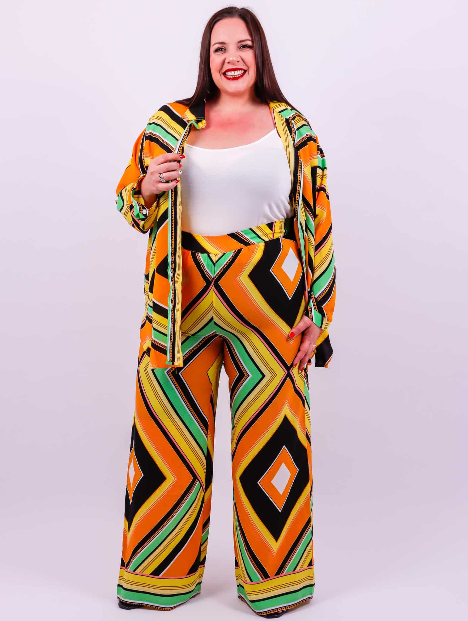 Ensemble imprimé Pantalon taille haute Dos élastique Coupe chemise ample Le modèle mesure 1m72 et porte une taille 50