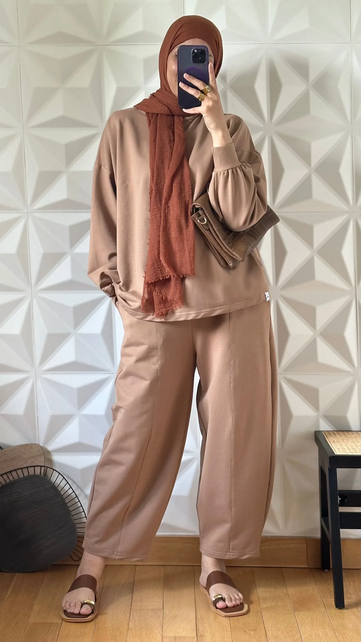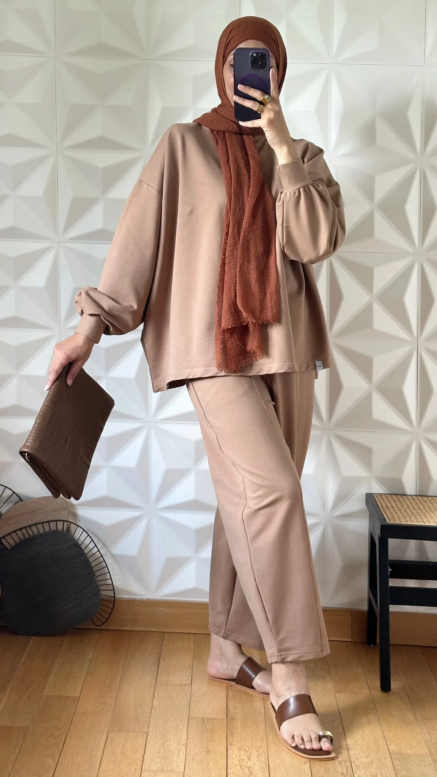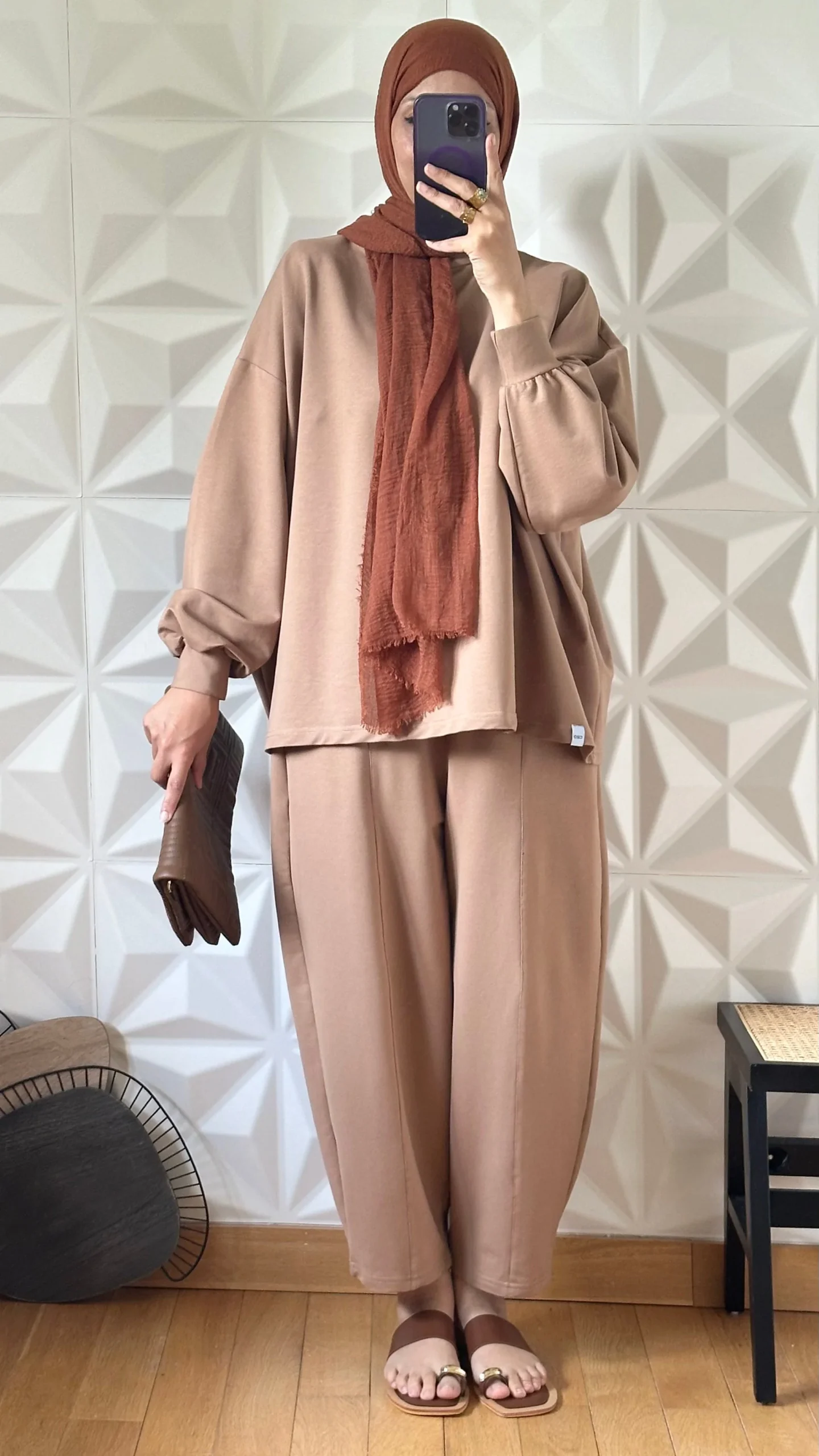 Ensemble oversize en Coton avec pantalon coupe Barrel – Camel