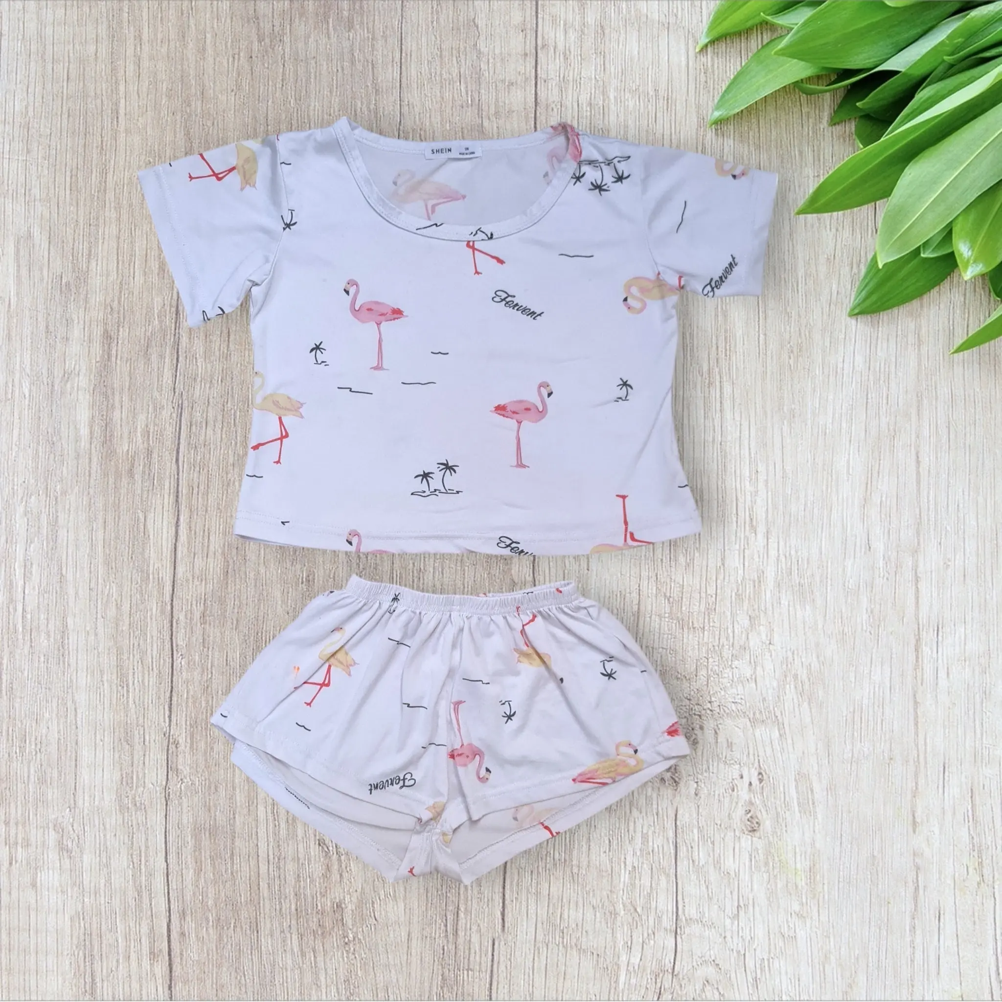 Ensemble pyjama fille–7 ans–SHEIN–Motifs flamants roses–Très bon état