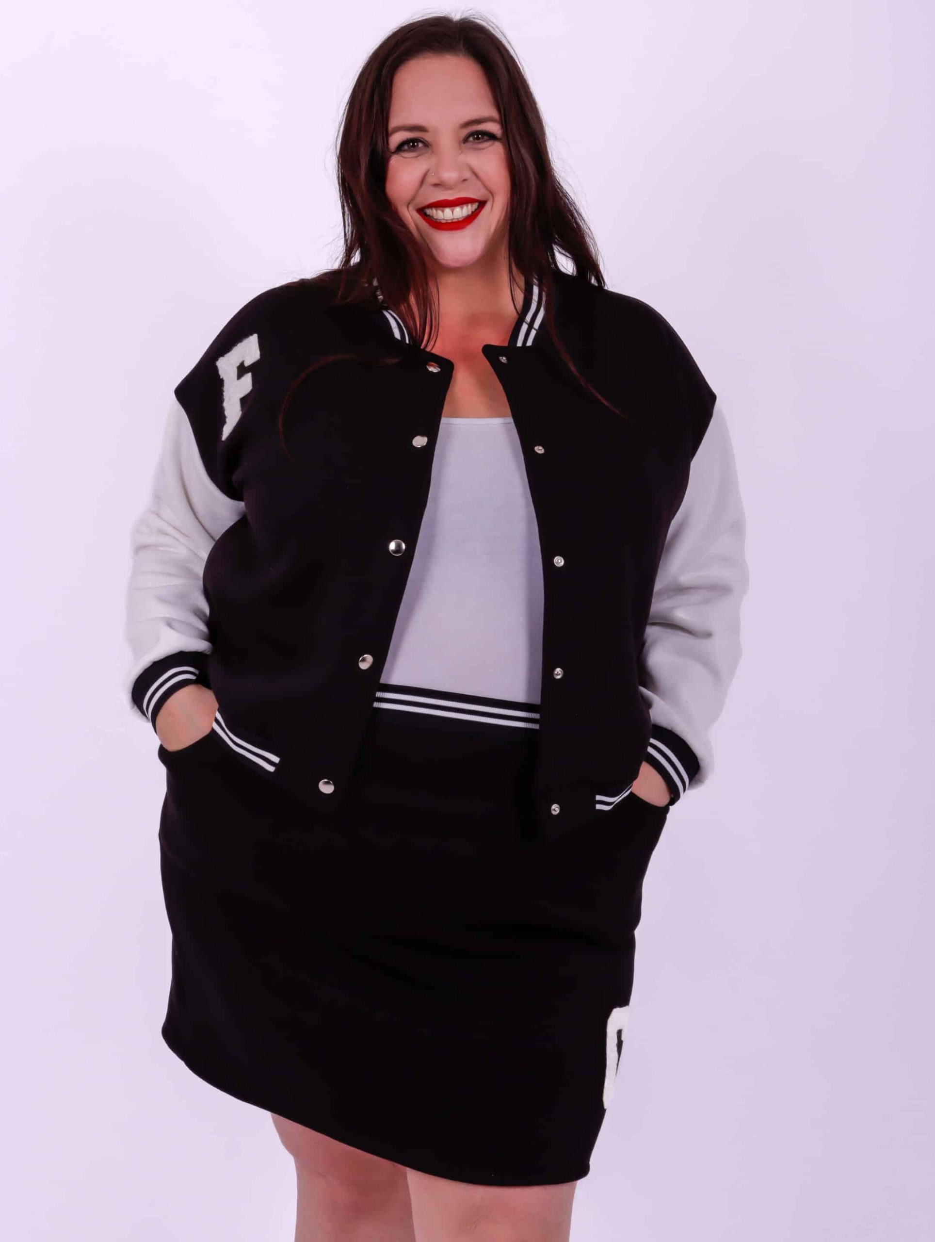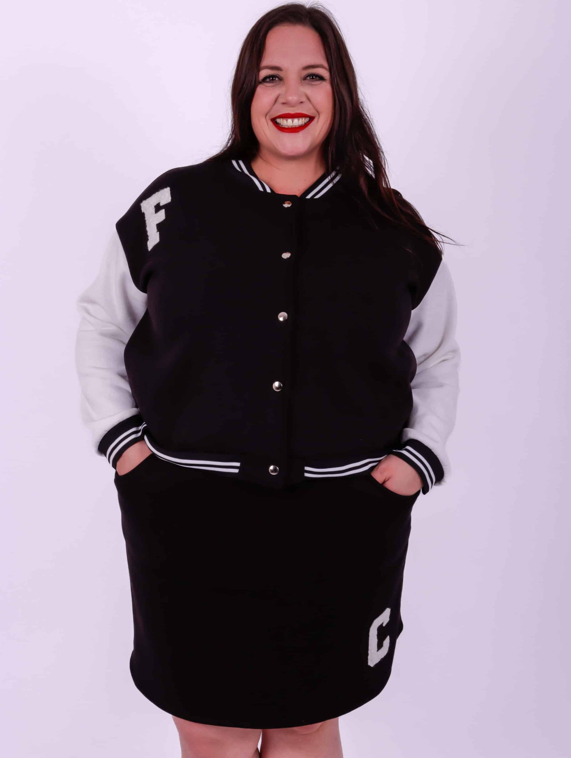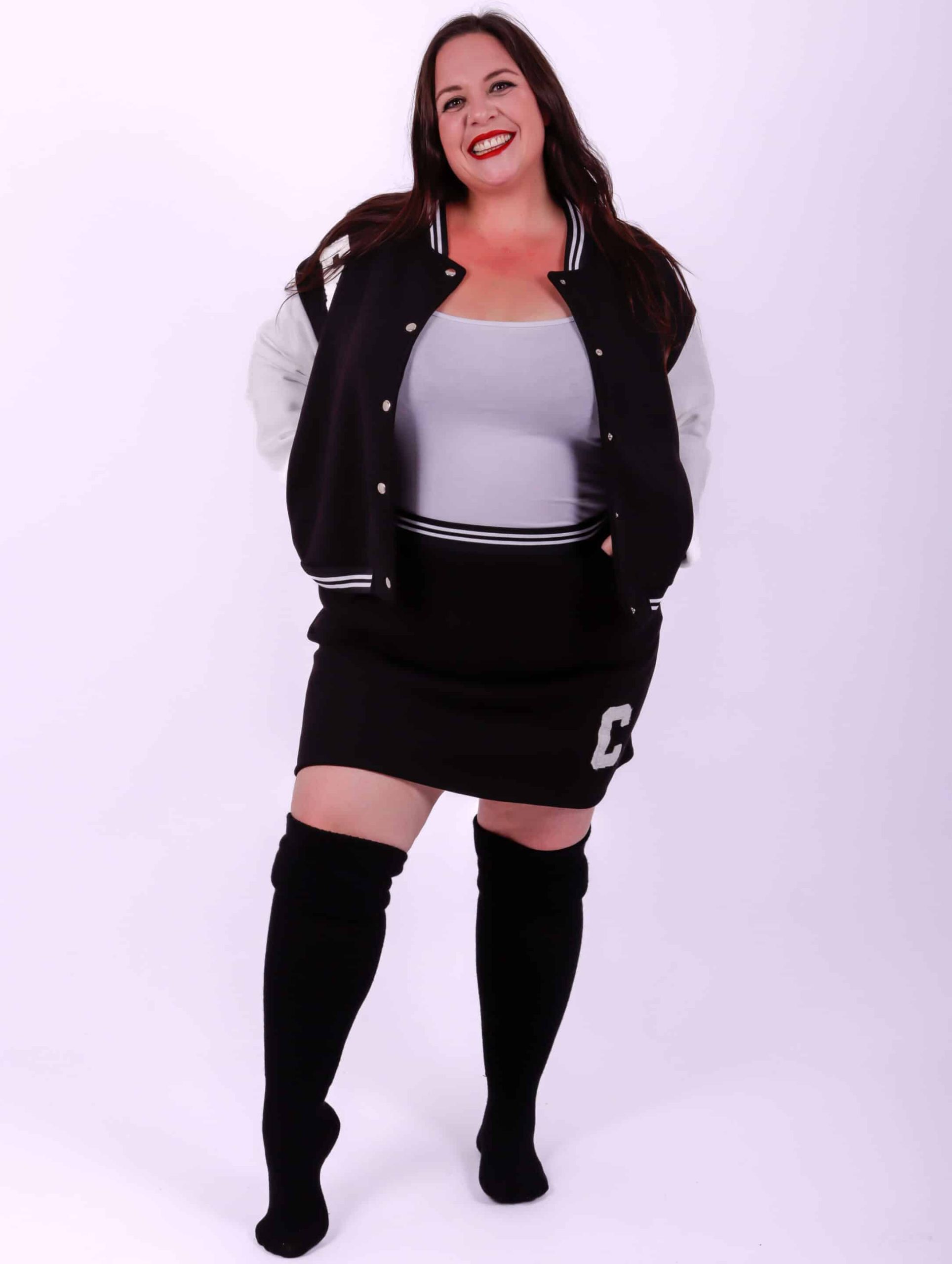 Ensemble school girl grande taille Coton molletonné La veste et la jupe ont des poches Le modèle mesure 1m72 et porte une taille 50/52 Attention, afin d’éviter que le noir de la veste déteigne sur les manches il est déconseillé de passer la veste en machine. Privilégiez un lavage à la main ou à sec.