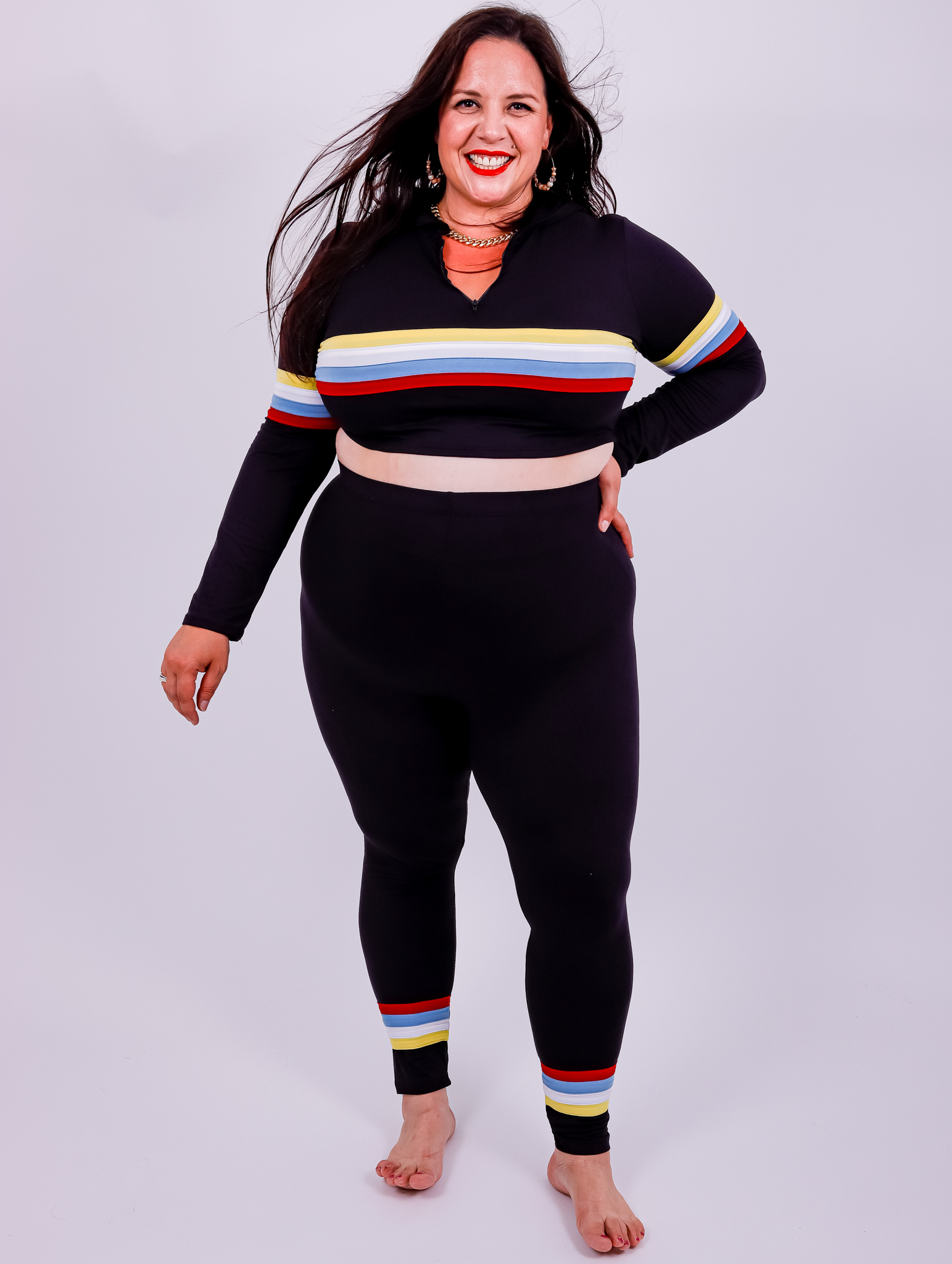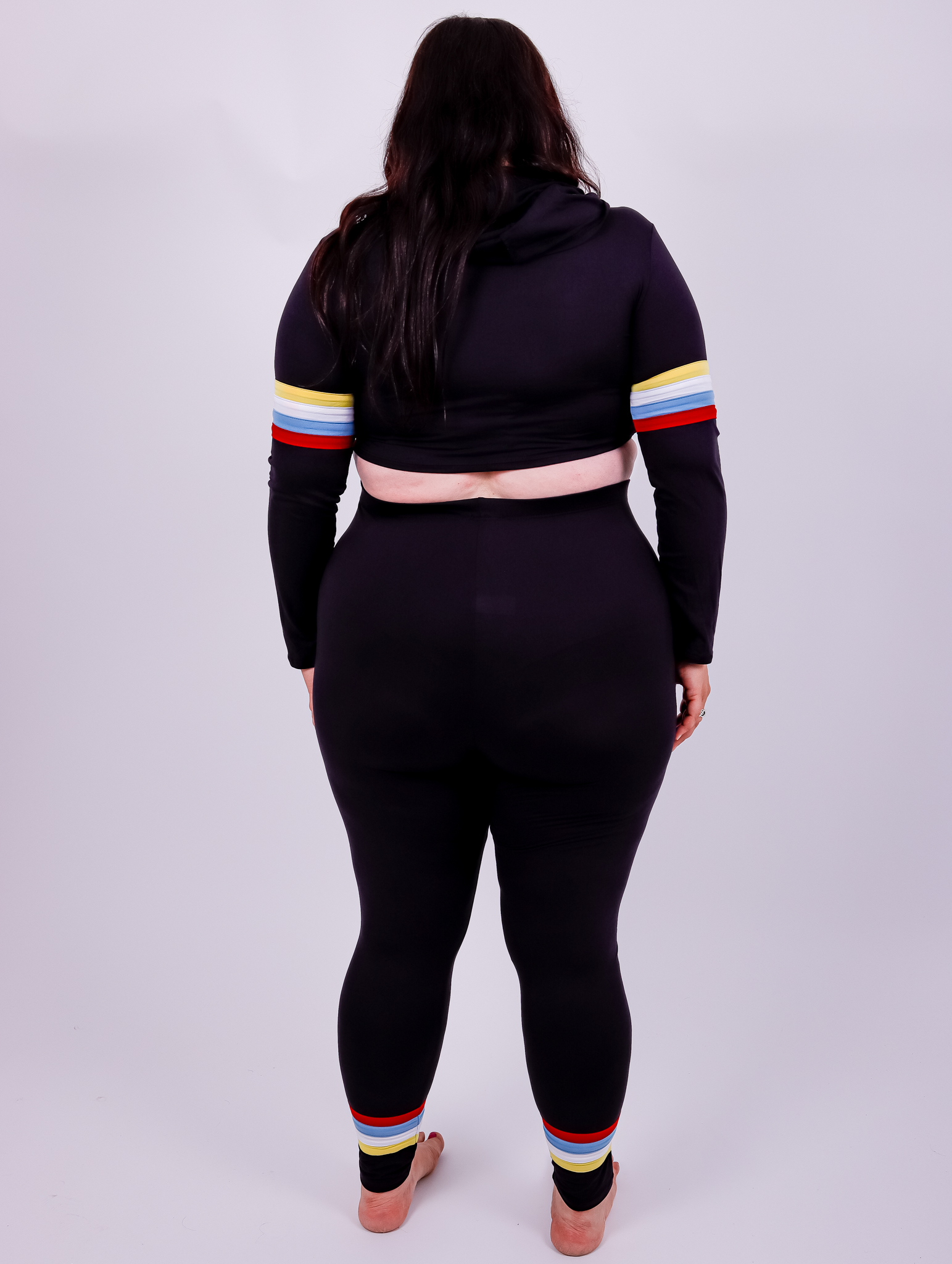 Ensemble sport wear Matière douce Legging très taille haute Haut court façon à capuche Le modèle mesure 1m72 et porte une taille 50/52