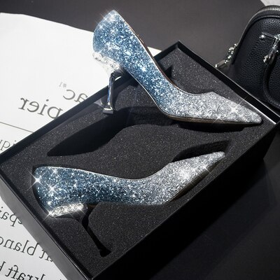 Optez pour ces escarpins à talons bleu argent et scintillez de mille feux à la fête ou au prochain mariage auquel vous serez invitée.