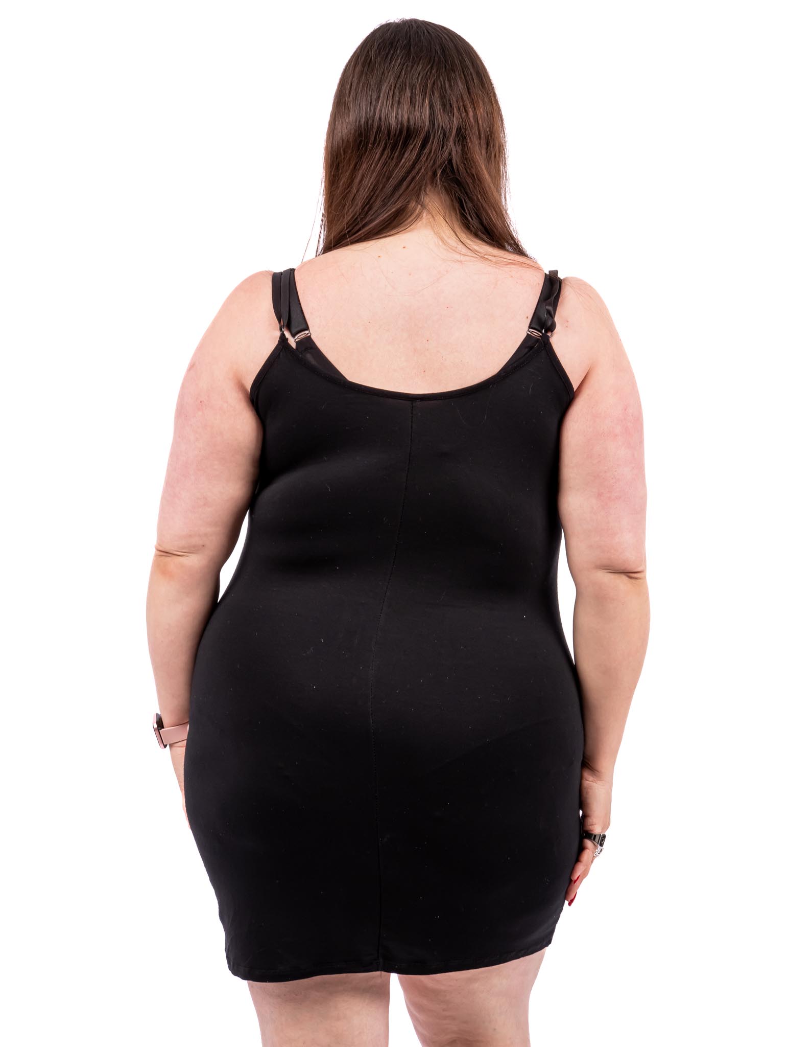 Fond de robe noir Taille unique convenant jusqu’au 54/56 Matière extensible en viscose et élasthanne Bretelles réglables Le modèle mesure 1m72