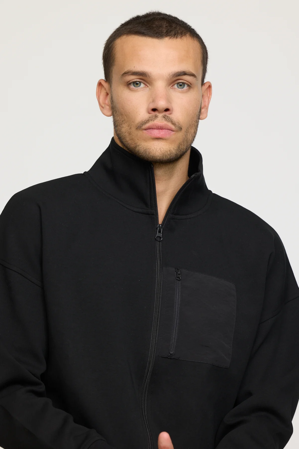 Les manches longues et le col montant protègent du froid tout en apportant une touche élégante. Une poche poitrine zippée sur le buste gauche vient ajouter un détail pratique et stylé, idéale pour garder vos petits essentiels à portée de main.