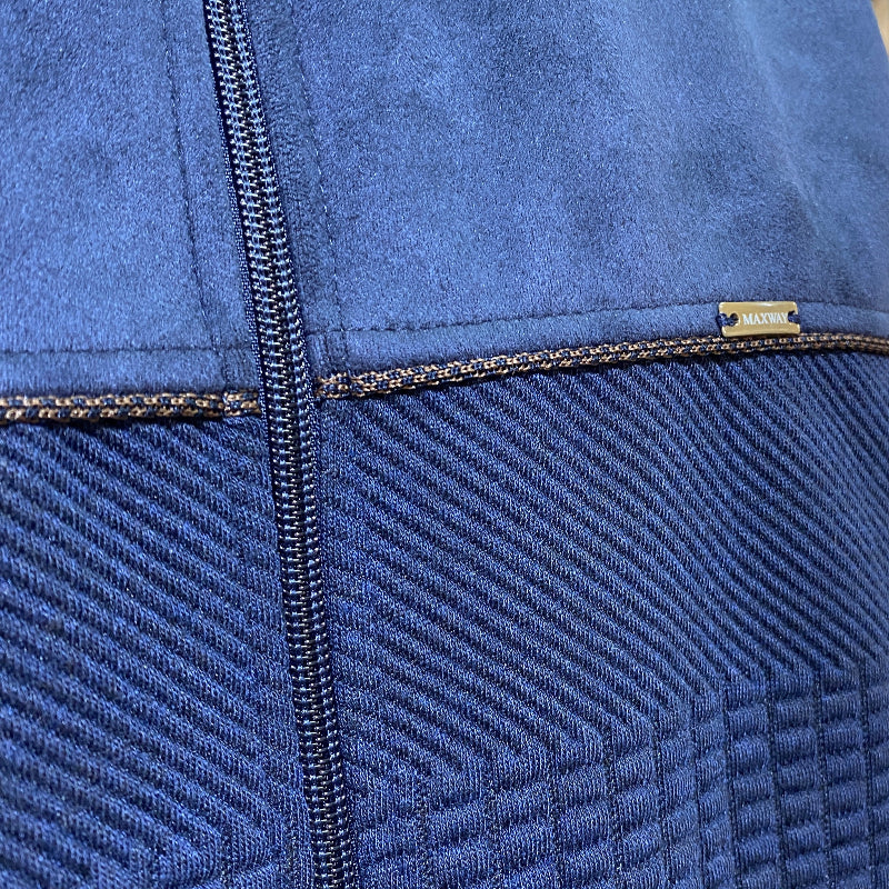 Optez pour l’élégance décontractée avec ce gilet sans manches bleu marine de la marque Maxway. Conçu pour apporter du style à vos tenues tout en vous gardant au chaud, il présente un col montant et une fermeture zippée pratique. Les textures contrastantes ajoutent une touche moderne et raffinée à votre look.