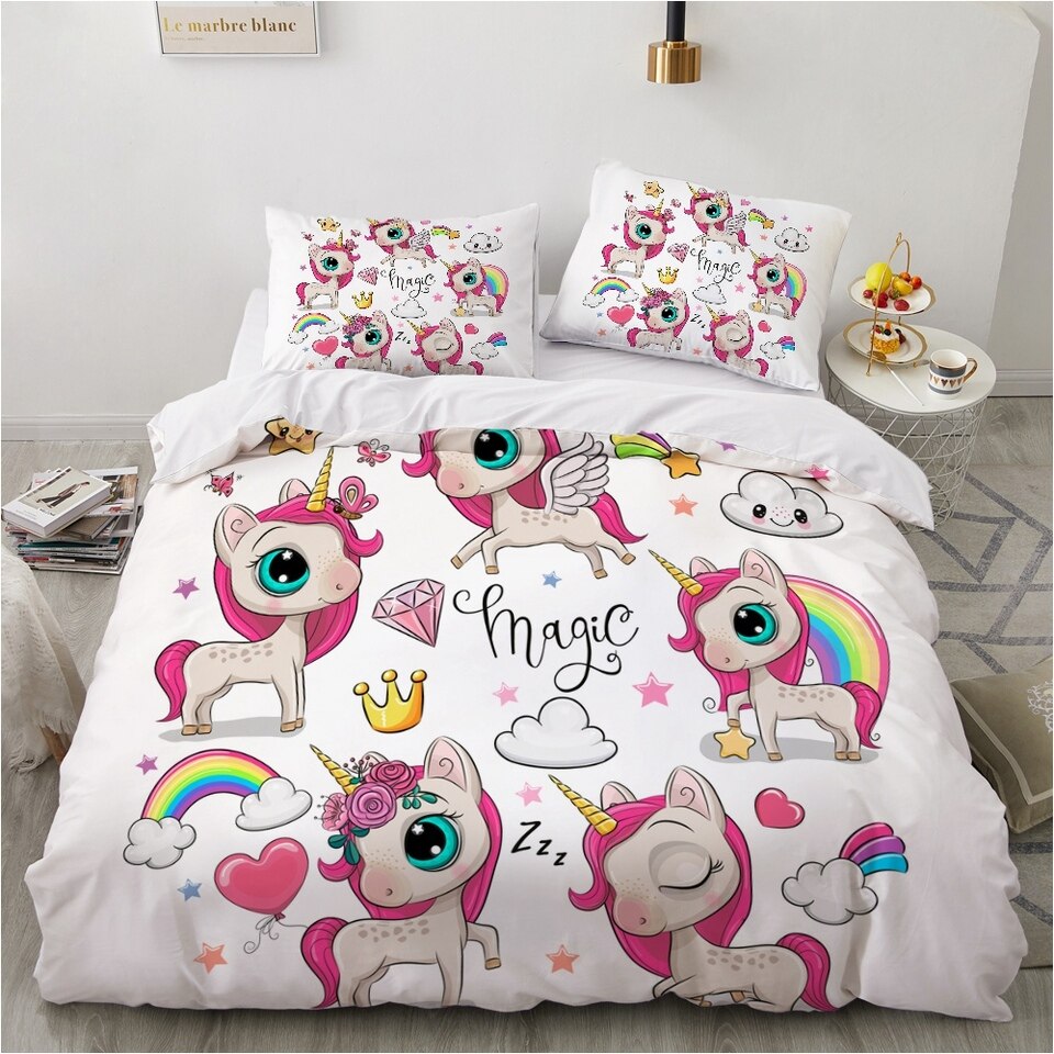 Transformez la chambre de vos enfants en un royaume enchanté avec notre Housse de Couette Licornes Magiques, alliant confort et rêve pour des nuits magiques.