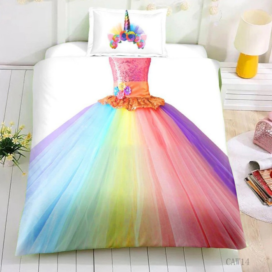 Apportez de la magie à la chambre de vos enfants avec notre Housse de Couette Robe Licorne, alliant douceur, praticité et design enchanteur.